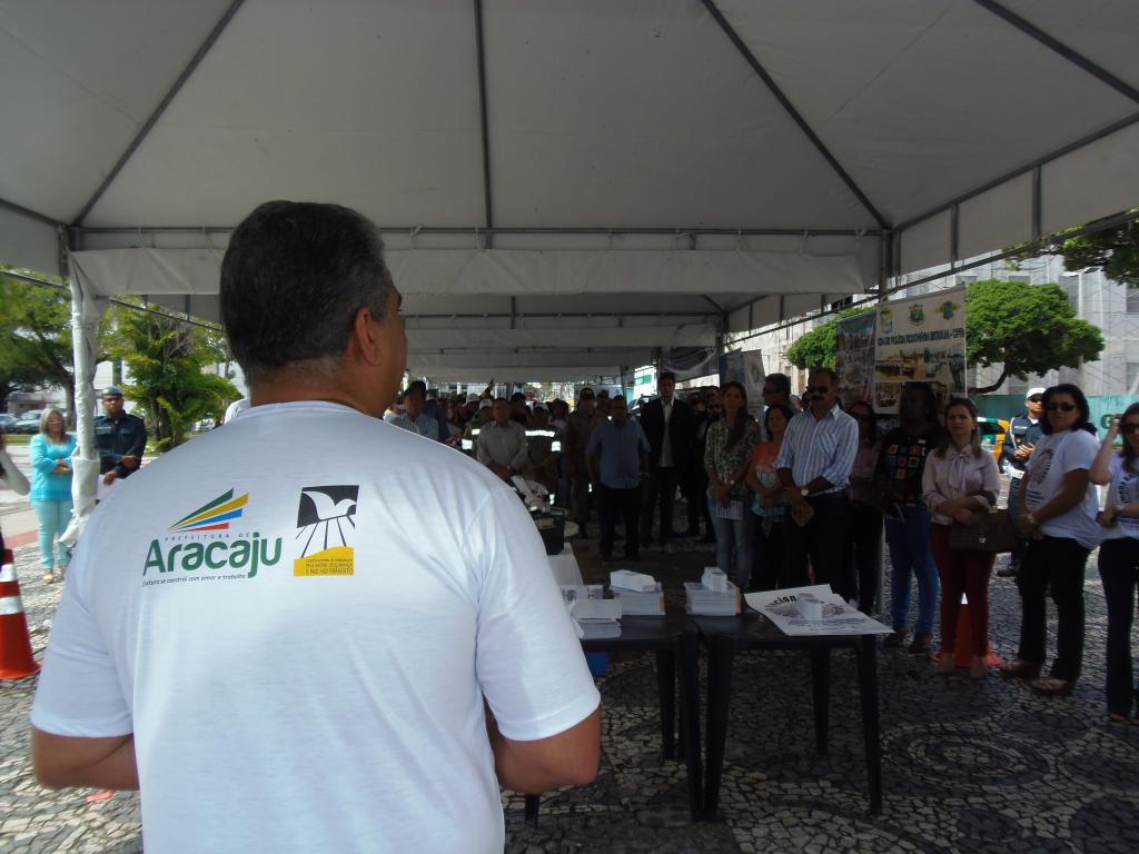 Na manhã desta quinta-feira, 18, a Superintendência Municipal de Transportes e Trânsito (SMTT), órgão vinculado à Secretaria Municipal da Defesa Social e da Cidadania, abriu a Semana Nacional de Trânsito (SNT) 2014 em Aracaju. Junto aos parceiros do Comitê Municipal de Mobilização pela Saúde, Segurança e Paz no Trânsito (Comsepat), a solenidade aconteceu na Praça Fausto Cardoso, no Centro da cidade. A SNT deste ano acontece entre os dias 18 e 25 de setembro com o tema ‘Cidade para Todos: Prioridade e Proteção ao Pedestre'.