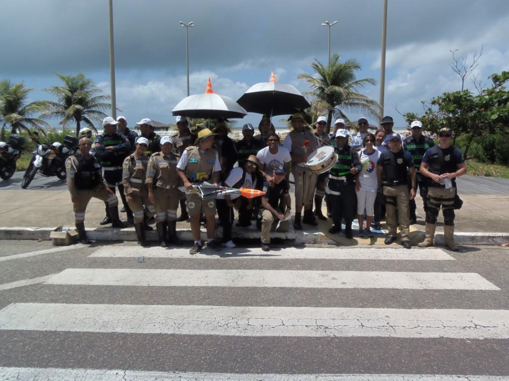 Presente sempre nas ações, o grupo de Teatro da SMTT Os Cones, passou de forma lúdica a mensagem de respeito ao pedestre e da necessidade dos motoristas em respeitar a faixa de sinalização. Foram também distribuídos pela equipe de educação para o trânsito da SMTT, panfletos, adesivos e materiais alusivos à campanha educativa para motoristas e pedestres que passavam pelo local.