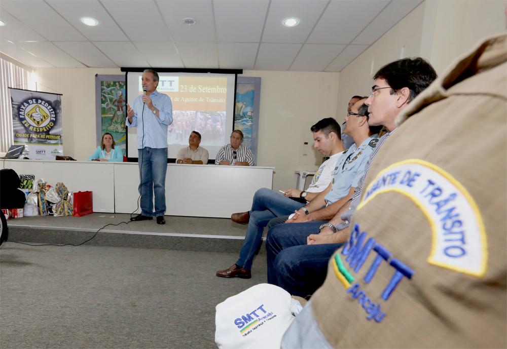 Sabendo da importância que o agente de trânsito tem para Aracaju e da competência dos mesmos, o prefeito José Carlos machado fez questão de comparecer ao auditório da SMTT e parabenizar a todos que fazem a mobilidade urbana da capital sergipana.