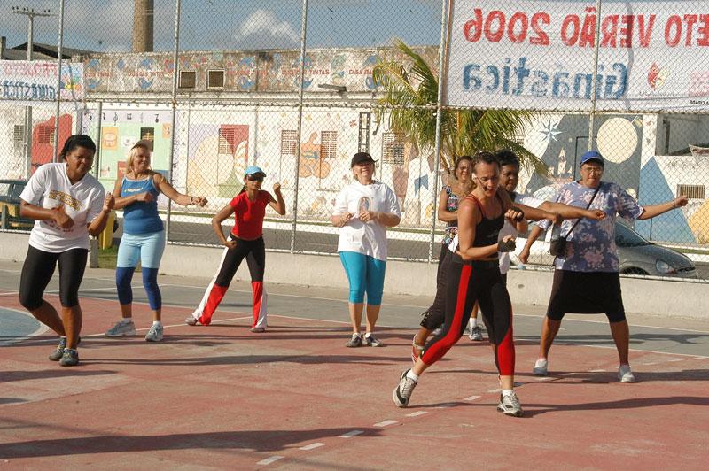 Os praticantes das caminhadas matinais na orla do bairro Industrial tiveram mais um atrativo para sua atividade. Das 06h às 08h, eles participaram de aula de ginástica comandada pelas academias Mais Vida e Corpore Gym. A atividade faz parte da programação esportiva do Projeto Verão 2006. Ao longo de duas horas, os adeptos da caminhada entraram no ritmo da ginástica. Cada academia teve uma hora para apresentar sua aula. Durante o final de semana, as aulas de ginástica acontecerão na praia de Atalaia e no calçadão da 13 de Julho retornando à orla do bairro Industrial no período de 9 a 13 deste mês. A animação dos alunos foi visível. É válida [ginástica] para ver se perde uns quilinhos e diminui o colesterol, disse Maria Cristina, 49, adepta das caminhadas matinais na orla do Industrial. Muito bom, vou continuar, emendou Laudicéia Oliveira, 49, que sugeriu a continuidade das aulas de ginástica no local após o Projeto Verão. Eleonar Silva, 58, afirmou que é uma ótima idéia as aulas de ginástica na orla e que virá todos os dias. De acordo com Maria do Carmo, 62, a aula serviu para praticar de forma correta os exercícios físicos. Agora quero trazer minha filha para participar das aulas", garante. No final da tarde de hoje, das 17h às 20h, será a vez do calçadão da 13 de Julho receber as aulas de ginástica. Três academias dividirão o palco: Forma Fitness, Total Fitness e Corpore Gym.