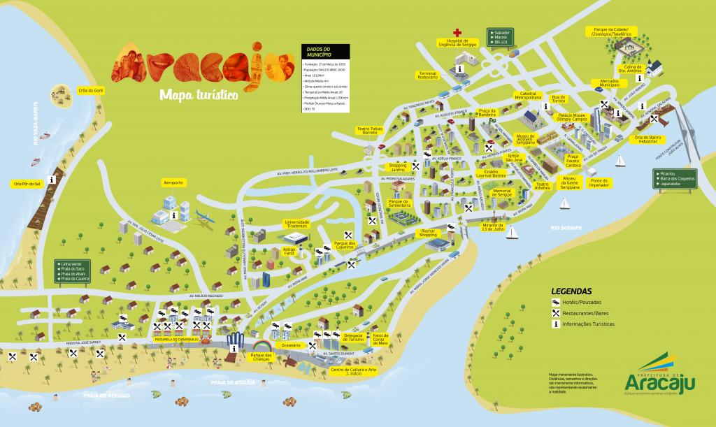 O mapa foi construído de forma ilustrativa no modo prático e de fácil compreensão para facilitar a vida do turista que busca conhecer Aracaju. Com este mapa o turista vai colocar Aracaju no bolso. De forma dobrável e reduzida, o mapa pode ser colocado no bolso da calça ou da camisa e pronto para qualquer necessidade.