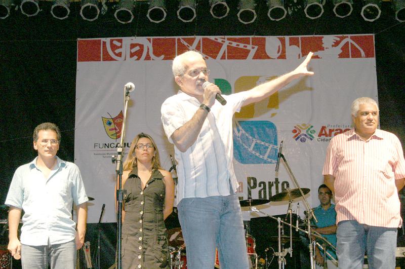 O prefeito de Aracaju, Edvaldo Nogueira, ao lado da presidente da Fundação de Cultura, Turismo e Esporte (Funcaju), Lucimara Passos, inaugurou na noite desse sábado, dia 24, o projeto ´Arte em Toda Parte´, que tem como objetivo levar arte à população de diversos bairros da cidade. O evento aconteceu na praça Osvaldo Mendonça, no conjunto Bugio. Também participaram do lançamento do projeto o secretário municipal de Governo, Sílvio Santos, e o vice-presidente da Funcaju, Elder Vieira. Eu tenho certeza de que esse projeto irá revitalizar a cultura da cidade nos bairros de Aracaju. Por isso é importante que os movimentos culturais existentes na cidade possam ter um canal de expressão, destacou o prefeito Edvaldo Nogueira, ressaltando três aspectos importantes. O primeiro fator que considero importante é levar cultura de qualidade para a periferia da cidade. Segundo, permitir que os valores locais se encontrem. Terceiro, criar um mercado de trabalho para os artistas locais, comentou. O prefeito também falou sobre a importância pessoal da escolha do bairro que deu início ao ´Arte em Toda a Parte´. Tenho muita ligação com o Bugio, pois meus pais moraram aqui muitos anos. Meu filho, quando nasceu, morou um ano com os avós aqui. É um bairro com grande efervescência cultural e por isso escolhi o conjunto como ponto de partida desse projeto, disse Edvaldo. O show inaugural foi da dupla Chiko Queiroga e Antônio Rogério, que no mês de aniversário de Aracaju homenageou a cidade com um repertório todo especial, que contou inclusive com a participação do prefeito. Logo em seguida se apresentou o grupo Guerreiros Revolucionários, que foi formado no próprio Bugio. Inicialmente nós faremos três versões do evento em três bairros. Começamos hoje com o Bugio e na próxima semana faremos em dois bairros, que é o Santos Dumont e o Augusto Franco. A partir daí a gente vai fazer mensalmente, ressaltou Lucimara Passos. Ainda segundo a presidente da Funcaju, o objetivo do evento é formar um público cultural importante na cidade, seja em qualquer forma de expressão. Assim, a gente leva uma programação cultural para os bairros e aproxima o movimento cultural da cidade para a comunidade. Por exemplo, no Bugio, nós inserimos uma oficina de DJ´s porque aqui tem um movimento muito grande de hip hop, reforçou Lucimara. E concluiu: Esse evento vai garantir pelo menos uma vez ao mês um espaço para esses grupos se apresentarem, incentivando novos artistas a criarem coisas novas. A idéia é continuar pelo menos até dezembro de 2008, disse. Confira abaixo a programação da próxima semana do ´Arte em Toda a Parte´ 30 de março - sexta-feira (Pça. Ulisses Guimarães - Santos Dumont) 19 h - Teatro - ´Noites Sergipanas´ - Cia de Artes Mafuá 20h30 - Cinema - Curta metragem: ´Avenca´ e Longa metragem: ´Narradores de Javé´ 22 h - Música - Bandas Reação e Alapada 31 de março - sábado (Pça. João Rodrigues - Augusto Franco) 14 às 18 h - Oficina de Grafitagem 19 h - Teatro - ´O Santo e a Porca´ - Grupo Oxente de Teatro 20h30 - Cinema - Curta metragem: ´Avenca´ e Longa metragem: ´Narradores de Javé´ 22h - Música - Amorosa e Banda Severina