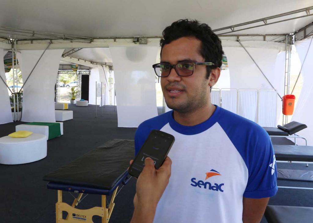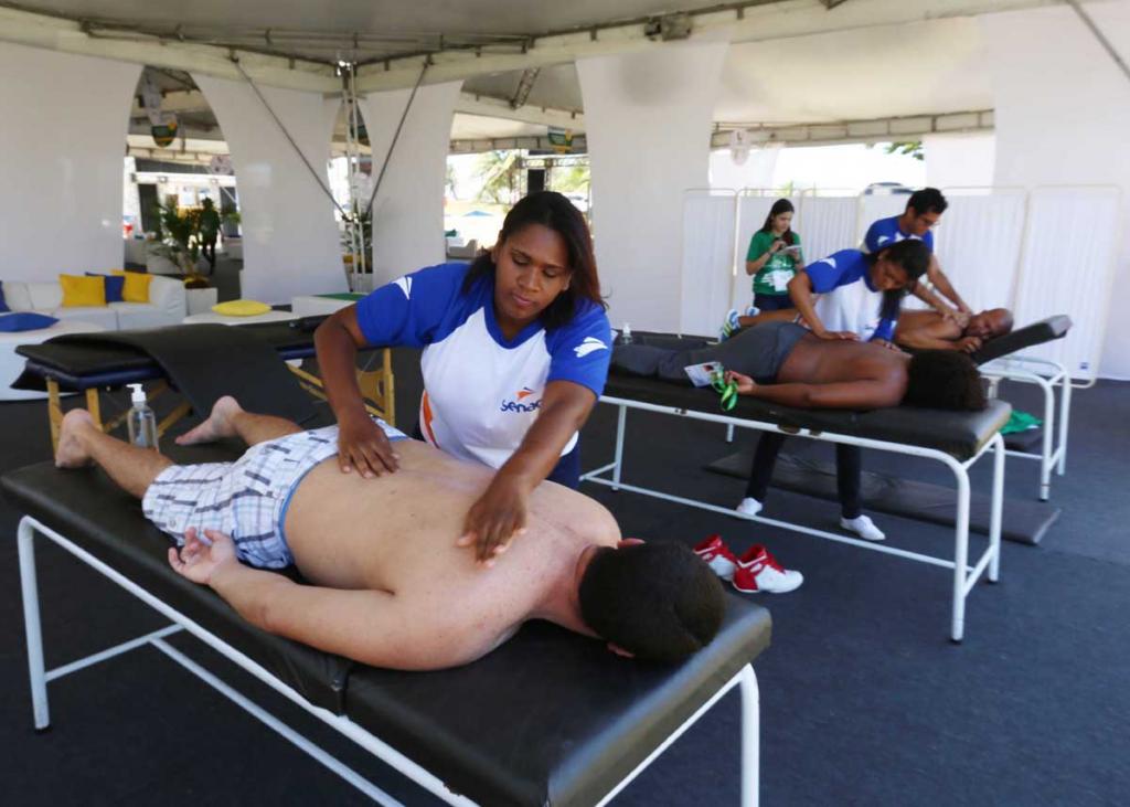Para praticarem as técnicas aprendidas sobre a massagem sueca, o objetivo da ação é ajudar na desintoxicação dos atletas. “Estamos com os alunos do Senac e vamos trabalhar com a massagem sueca, aquela que trabalha a parte desportiva e o objetivo é fazer o trabalho com os atletas para ajudar na desintoxicação. A massagem também é calmante e relaxante, mas o objetivo principal para os atletas é a desintoxicação, que eles vão atrair através das atividades esportivas”, explica o professor do Senac, William Guerra.