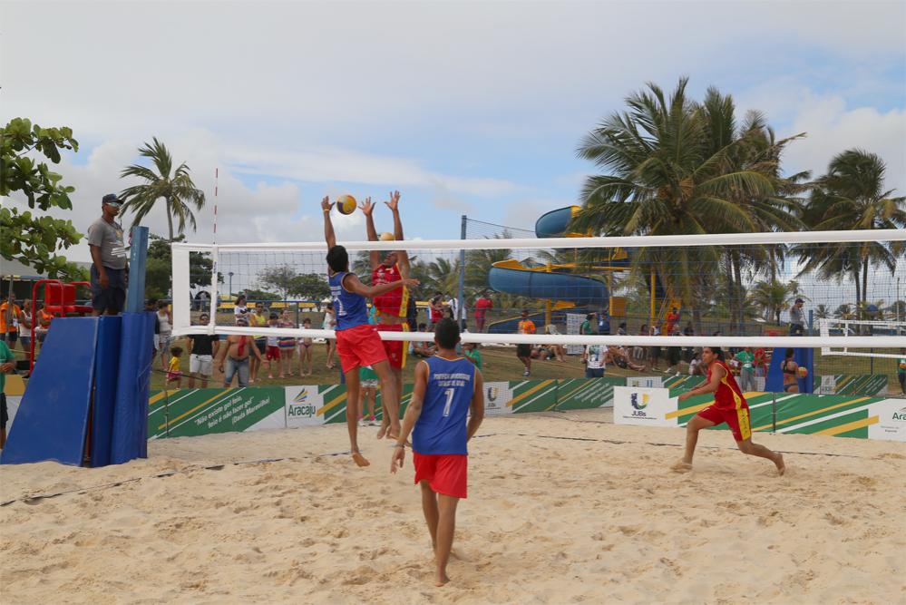 O primeiro lugar masculino do Vôlei de Praia ficou com a dupla da do Espírito Santo, os garotos da Rede de Ensino Doctum, os bicampeões Marcus Borlini e André Loyola. Treinando há seis meses juntos, eles mostraram afinidade em quadra, realizando passes técnicos de alta complexidade. "Já conhecíamos nossos adversários de outras disputas pelo Brasil, mas conquistamos essa vitória ponto a ponto, com muito esforço, porém levamos em conta a marcação tática que estudamos previamente para esta disputa", disse André. A dupla conseguiu também o primeiro lugar na edição passada do Jubs, que aconteceu em Goiás em 2013.