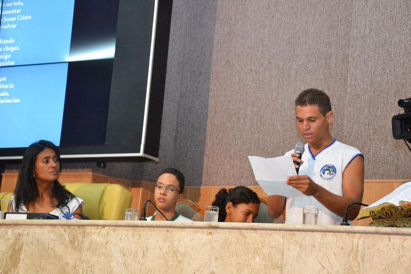 Finalmente, o terceiro colocado, Samuel da Silva, aluno do 7º ano, informou que o tema de seu poema foi "As Drogas", um problema seriíssimo que vem destruindo e matando muitos, principalmente os adolescentes e jovens. "A exemplo de meus colegas, o assunto abordado é praticamente o mesmo, famílias e comunidades destruídas, um mundo sem paz. A poesia é ótima para abordarmos qualquer assunto", relatou.