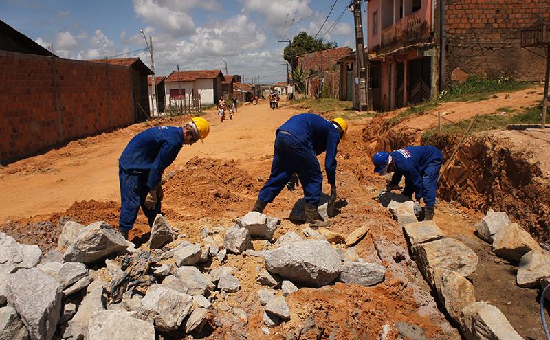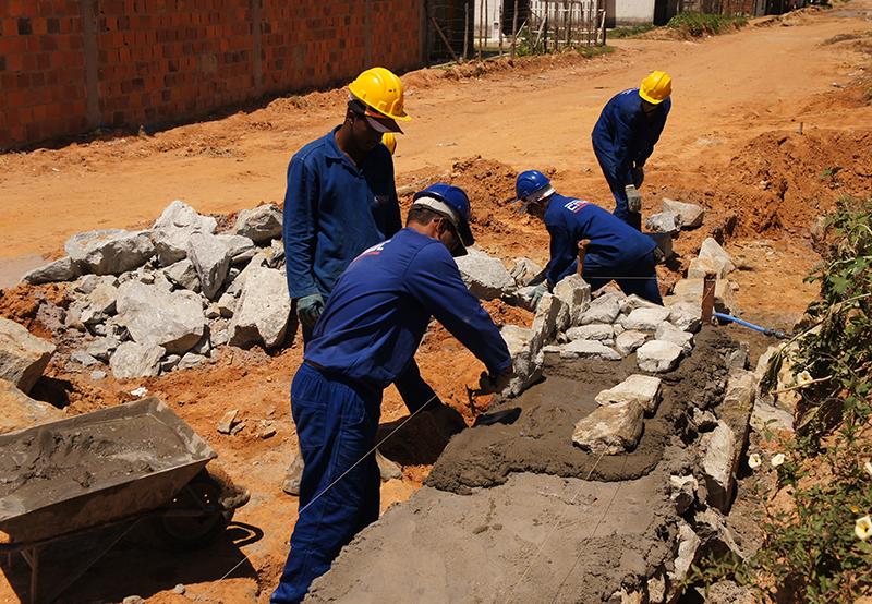 Na manha desta terça-feira, 25, a fase a obra teve continuidade com a consolidação de implantação de equipamentos que consolidarão a urbanização, como a construção de muros e alicerces que servirão como bases para as demais fases que serão executadas. Dentro do calendário, os serviços continuam e em breve avançaram nas demais ruas do bairro.