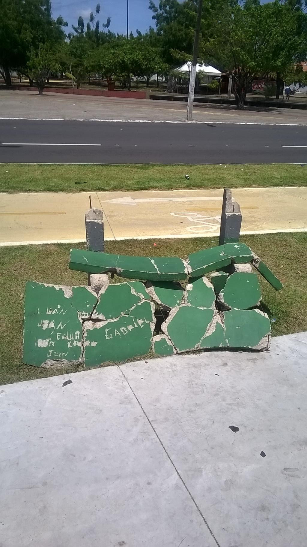 "Fomos à Canal 5 e além de constatarmos bancos depredados, encontramos espécies arbóreas desfolhadas, como também danos aos coletores de resíduos e equipamentos de lazer, pichação e garrafas jogadas na grama. Vale ressaltar que garrafas jogadas na grama podem provocar incêndios, devido ao sol que bate no vidro, aquecendo-o", informa Cleverton.