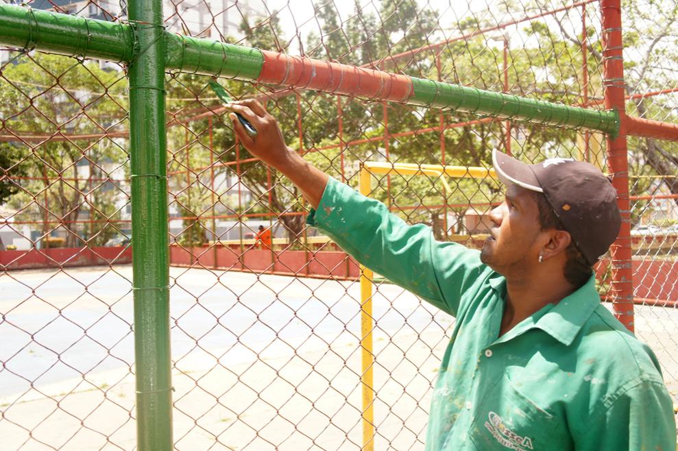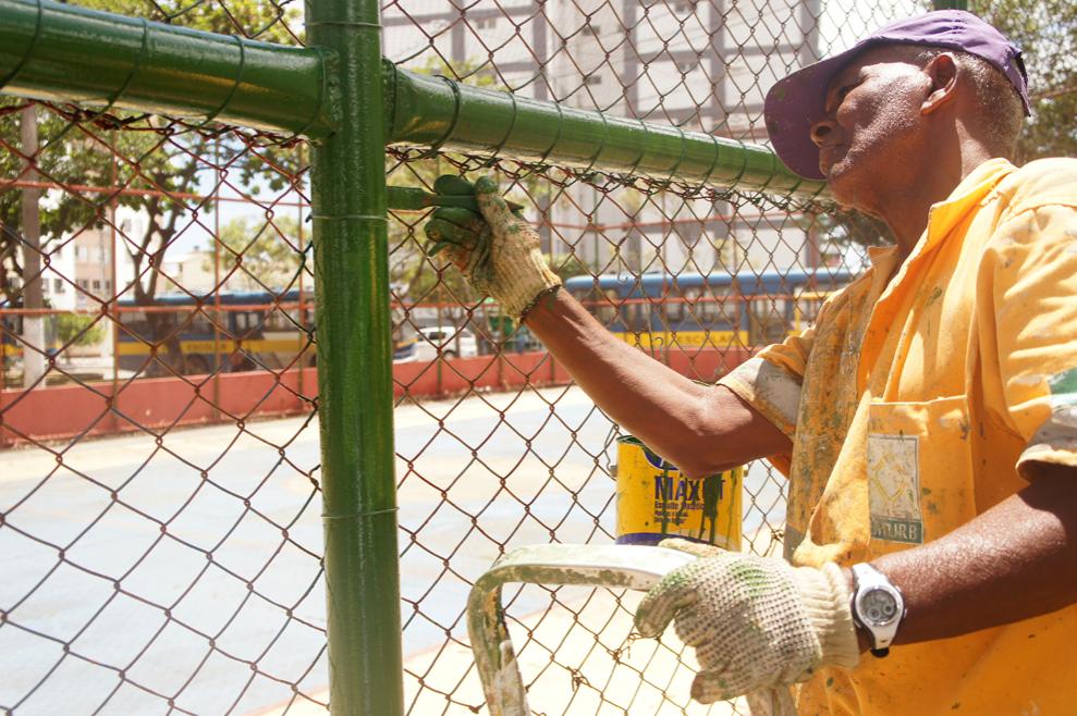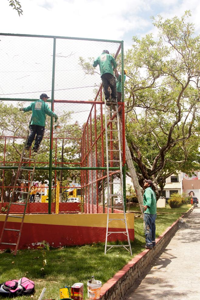 Uma das praças contempladas com a manutenção executada pela empresa municipal foi a Praça da Imprensa, situada no bairro Salgado Filho. Na manhã desta quarta-feira, 3, teve prosseguimento a pintura do alambrado da quadra de esportes e outros equipamentos destinados às práticas de exercícios e outras atividades lúdicas.