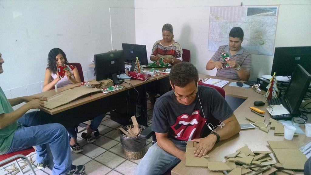 Tendo em vista que a meta da Secretaria Municipal do Meio Ambiente (Sema) é realizar atividades e serviços de recuperação, preservação e proteção do meio ambiente, a equipe de Licenciamento Ambiental da secretaria iniciou o processo de reutilização de material descartável, como caixas de papelão, com o intuito de transformá-las em enfeites natalinos.