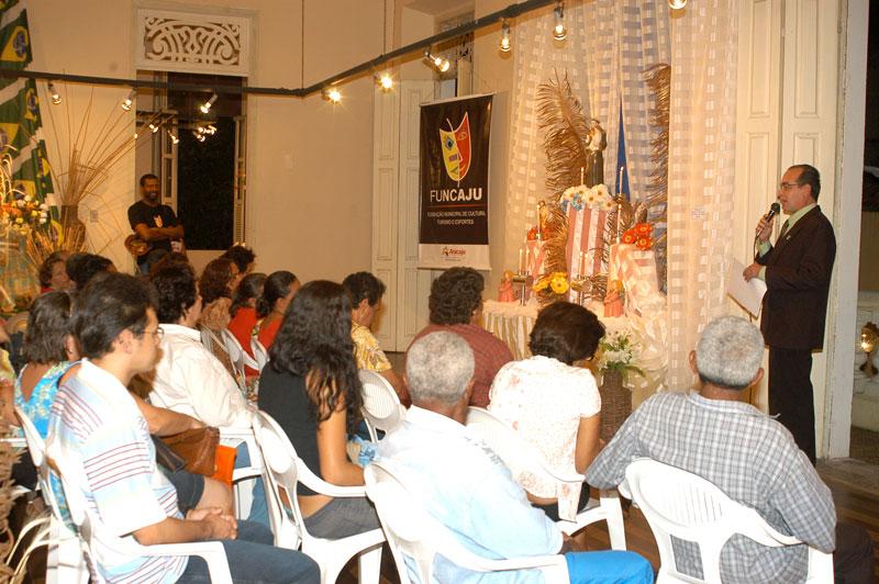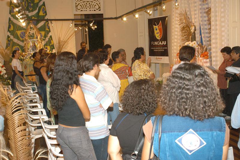Pães, orações, pedidos por um amor ou um casamento. Essas são coisas que caracterizam as trezenas de Santo Antônio e que podem ser encontradas na 6ª Exposição de Altares de Santo Antônio, que está aberta ao público no Centro de Cultura e Arte da Universidade Federal de Sergipe (Cultart/UFS) até o próximo dia 30. 13 altares, montados por 13 instituições diferentes, compõem a exposição em homenagem ao ´santo casamenteiro´ e ´santo dos pobres´. Como parte do evento, acontece a trezena de Santo Antônio. Cada instituição que montou um altar ficou responsável por um dia da trezena, que começou no dia primeiro e termina no dia 13, dia do santo. Na última quinta-feira, dia 8, foi o dia da Fundação Municipal de Cultura, Turismo e Esporte (Funcaju), representada pela Escola Oficina de Arte Valdice Teles. A reza foi feita pelo Grupo Marujada, do Povoado Alagadiço, município de Frei Paulo. Segundo o coordenador da exposição e diretor do Cultart, Otávio Luiz, esta exposição é uma forma de reforçar a tradição dos altares e das rezas, muito comum entre as famílias nordestinas. “Eu organizava esta exposição na Bahia, quando eu morava lá e faço, aqui em Aracaju, há seis anos. Dois professores, que faziam a exposição comigo na Bahia, hoje montam este trabalho em Valencia, na Espanha”, disse o coordenador. “A Funcaju não poderia recusar um convite como este, uma oportunidade de reforçar e valorizar a cultura nordestina, tão rica e tão forte”, disse Maria Carneiro, diretora da Escola Oficina de Arte Valdice Teles. O altar da Fundação traz elementos tradicionais, como palha e cipó, e os três santos juninos: Santo Antônio, São João e São Pedro. O Cultart fica à avenida Ivo do Prado, 612, e funciona das 8 às 12 horas e das 13 às 18 horas. Marujada O Grupo de Zabumba e Pífano Marujada foi responsável pelas atividades de noite de quinta-feira. Ele é composto por 50 pessoas, entre crianças, jovens e idosos. “Esta é uma tradição de mais de 150 anos. Conseguimos envolver os jovens e perpetuar a tradição, passando de pai para filhos”, explicou Josefa Alves da Silva, coordenadora do grupo. Segundo ela, as novenas a Santo Antônio e Nossa Senhora da Conceição é tradição em Alagadiço. Josefa conta que o Povoado e a tradição surgiram de uma promessa que dona Angélica fez a Nossa Senhora da Conceição para que o marido, João Sabino, escapasse da Guerra de Canudos. Na região, havia apenas uma casinha, onde pediram abrigo e ficaram escondidos. A partir daí, o Povoado começou a se formar e, todos os anos, os moradores fazem a novena a Nossa Senhora da Conceição, no mês de dezembro, e a Santo Antônio, no mês de junho, com direito a quadrilha, zabumba, pífanos e fogos. Hoje, o povoado Alagadiço tem mais de 3.500 habitantes, mais de 1.600 votantes, que pleiteiam a elevação do local à categoria de cidade.