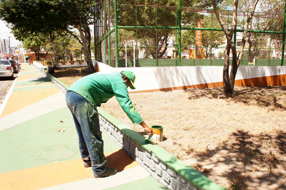 Além do revestimento, a Praça da Imprensa vem passando por uma recuperação mais ampla. Profissionais da Emurb estão finalizando pintura de bancos, canteiros, de sinalização de rampas de acesso para portadores de deficiência, do alambrado da quadra de esportes e outros equipamentos destinados às práticas de exercícios.
