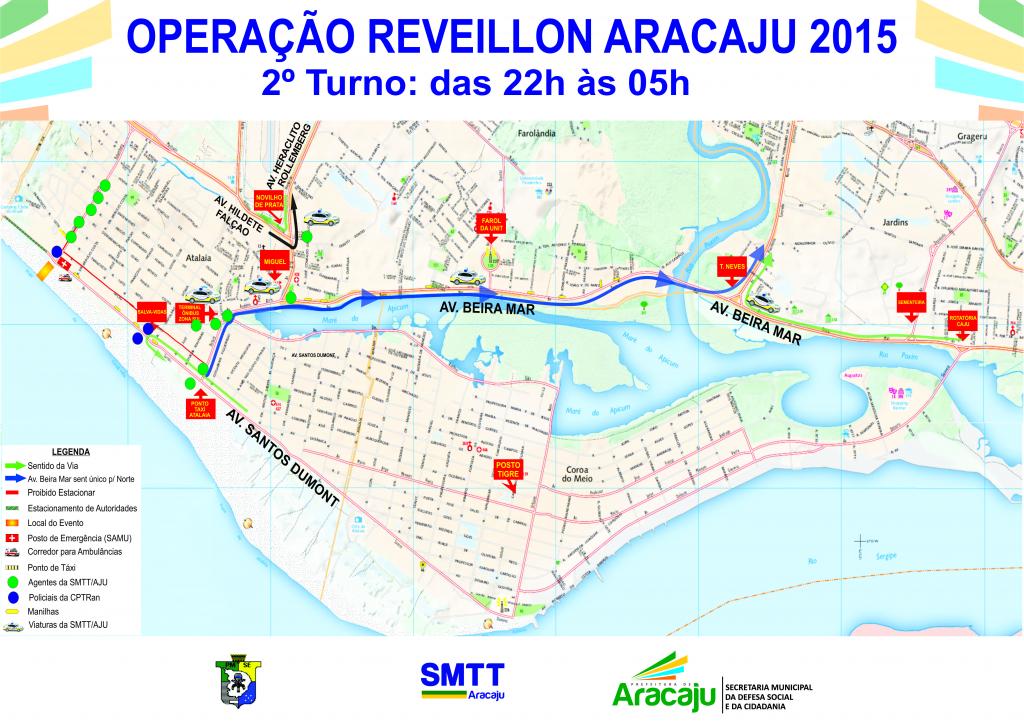 A Superintendência Municipal de Transportes e Trânsito (SMTT), órgão vinculado à Secretaria Municipal da Defesa Social e da Cidadania, por ocasião do Réveillon 2015, montou um esquema para otimizar o fluxo de veículos nas vias de acesso à Orla de Atalaia no próximo dia 31 (quarta-feira). A festa é promovida pela Prefeitura Municipal de Aracaju (PMA), na terceira etapa da Orla de Atalaia, em frente à rotatória da Passarela do Caranguejo.