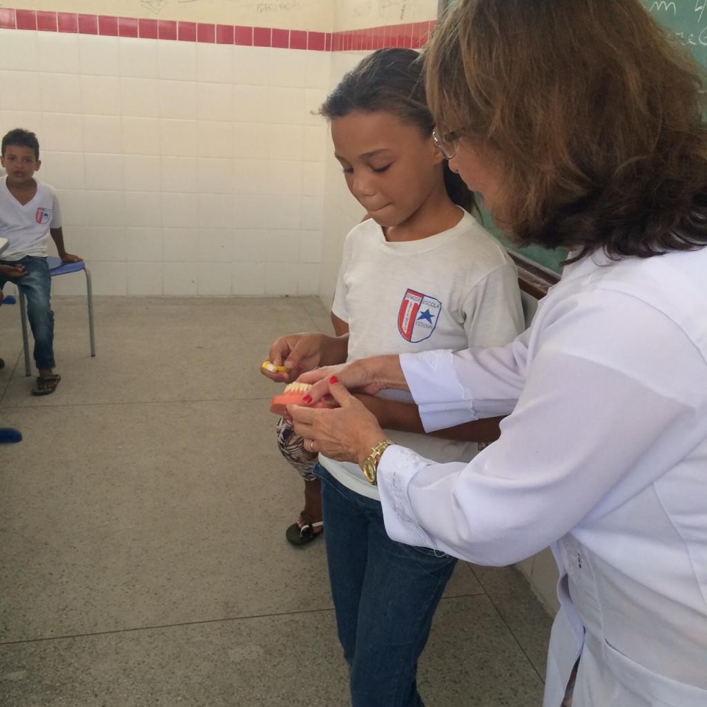 No último dia 6 de janeiro aconteceu a primeira ação bucal da Unidade de Saúde da Família Dona Sinhazinha destinada aos estudantes da Escola Estadual Senador Leite Neto. Com o objetivo de prevenir e ensinar sobre escovação correta da boca, a cirurgião-dentista, Maria Cristina Rocha de Souza atendeu 35 estudantes ensinando técnica correta e palestrando sobre cuidados.