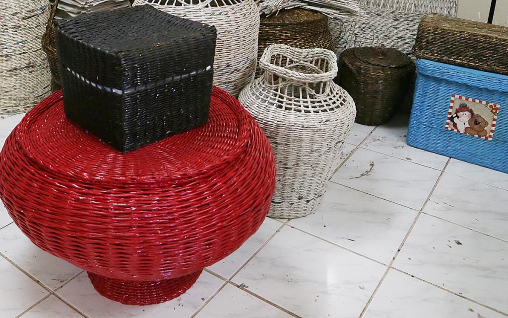 Sobre os jornais utilizados, Murilo explica que recebe doações e que a Emsurb oferece os outros materiais. "A maior doação daqui é com jornais, a Empresa fornece materiais como cola, tinta, esse material básico para produzir as peças. E também, nós fazemos tipo uma permuta, a pessoa chega aqui e vê um vaso bonito, e ela tem interesse naquele vaso aí eu estipulo pra pessoa como fazer a troca, tipo trazer três tubos de cola, uma lata de verniz, aí a gente faz e dá pra pessoa, que é uma coisa também que alivia um pouco o custo da Empresa", relatou Murilo.