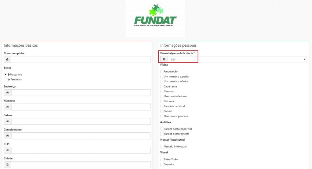 A partir da próxima segunda-feira, 26, a Fundação Municipal de Formação para o Trabalho (Fundat) intensificará o cadastramento de Pessoas com Deficiência (PCD), por meio da Agência do Trabalhador. O recrutamento visa ao preenchimento de quadro funcional no setor da Construção Civil, no entanto, há também vagas em cadastro de reserva para as áreas de Auxiliar Administrativo, Informática, Agente de Limpeza e Atendimento.
