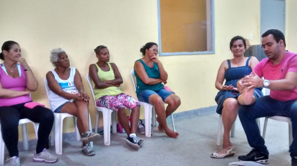 A Unidade de Saúde da Família (USF) Dona Jovem, em parceria com a equipe do Núcleo de Apoio à Saúde da Família (Nasf), realizou nesta terça-feira, 27, uma palestra com os participantes do Programa Academia da Cidade do Polo do Bairro Industrial. O objetivo da ação foi alertar para as principais doenças do verão, mostrando os cuidados com as lesões nos pés.