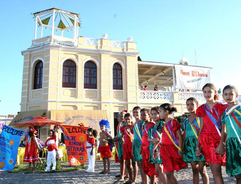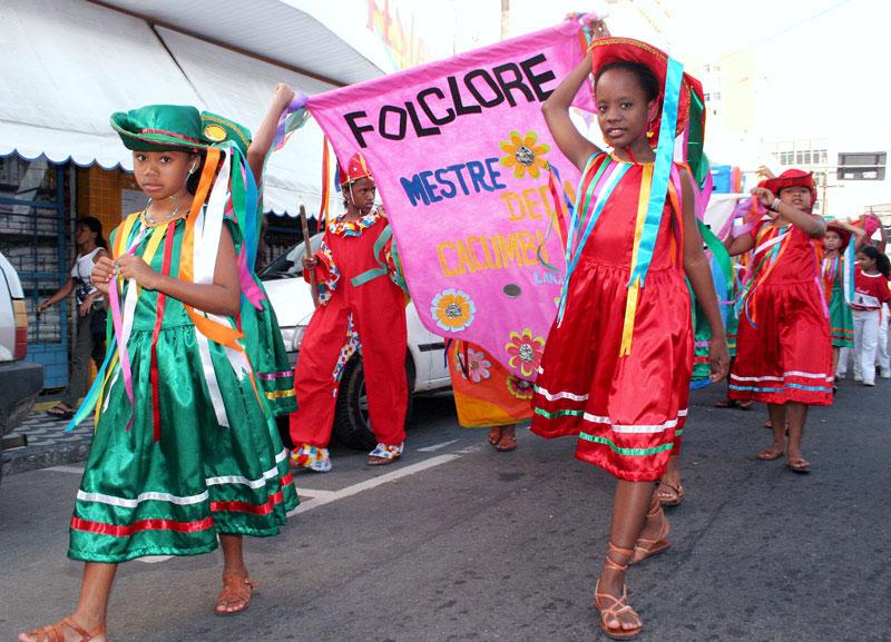 Mais que comemorar o mês do Folclore: preservar a cultura de um povo. Esse é o grande objetivo do esforço de educadores e alunos que pesquisam e ensaiam bastante para homenagear algumas das representações folclóricas sergipanas durante a II Mostra de Cultura Popular. O evento acontece até o dia 1º de setembro, quando o público freqüentador dos mercados municipais poderá conferir a programação da II Mostra. Os cortejos acontecem até a próxima sexta-feira, saindo sempre às 15 horas da praça General Valadão. A partir de hoje ocorrem também apresentações de repentistas na Passarela das Flores. Na sexta-feira terá apresentação de trios pé-de-serra. Na tarde de ontem, o Reisado e Guerreiro foram os grupos lembrados por jovens do Oratório de Bebé e integrantes do Peti do Porto Dantas. Eu sou o Mateus, o palhaço que marca o Reisado. Eu brinco com as dançarinas e animo o público, apresentou-se a pequena Rafaela Santana, 11 anos, aluna do Oratório Festivo São João Bosco, enquanto se preparava para sua apresentação. E eu sou a dona Deusa, a dona do baile, que pede licença para o grupo entrar e começar a dança, ensinou Gabriela Andrade, sobre sua personagem. Juntamente com outras 12 meninas, a Deusa e o Mateus mostraram um pouco de um dos mais conhecidos folguedos com suas fitas coloridas e que existe em várias regiões do país. Segundo o educador Cleverton Caetano, foram dois meses de ensaio, das danças e das músicas folclóricas, que permitiu conhecer as origens culturais do grupo representado. Para outra educadora, Gilmara Oliveira, que acompanhou os 15 integrantes do Programa de Erradicação do Trabalho Infantil (Peti), do bairro Porto Dantas, esse é o principal objetivo desse trabalho. O fundamental é eles saberem o que estão mostrando. Foram vários ensaios, várias conversações, pesquisa, e eles também assistiram a uma apresentação do grupo original de Laranjeiras, contou. A pequena Deusa do Guerreiro, Jéssica Pereira, 12 anos, mostrou o resultado de tanto trabalho. No Guerreiro o índio Peri e o Rei lutam pelo amor da Deusa. A Deusa gostava mesmo era de Peri, mas na luta com o Rei ele acaba morrendo e ela teve que se casar com o Rei, resumiu a menina, dominando a história de amor apresentada no folguedo e enchendo a sua educadora de orgulho. A programação do dia contou também com o coral Sagrado Coração de Jesus, da paróquia São Pio X no bairro 18 do Forte. Além disso, estandartes lembravam a todos os presentes os outros grupos do estado, como os Bacamarteiros de Carmópolis, as Caceteiras de São Cristóvão, a Taieira de Laranjeiras, a Batucada de Estância entre outros. Durante a noite houve a apresentação do espetáculo teatral dançado Noites Sergipanas, com a Companhia de Artes Mafuá.