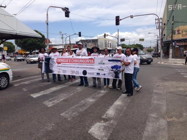 Durante a manhã, localizados nos semáforos situados na rótula do bairro Jardins (próximo a Unidade de Saúde da Família Dona Sinhazinha); bairro 13 de Julho (subida para a ponte do Shopping Riomar) e no Cruzamento entre Avenida Coelho Campos e Avenida João Ribeiro (ponto do táxi lotação) e até às 18h dentro dos dois shoppings da Capital, os agentes de endemias vêm realizando uma mobilização social para despertar nos motoristas, passageiros e clientes dos shoppings a consciência de entrar na luta contra a Dengue e a Febre Chikungunya.