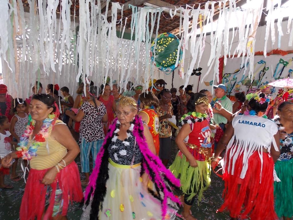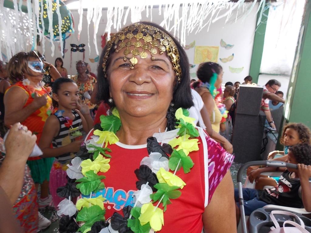 A moradora Maria de Lourdes Santos, 71 anos, aprova a realização de eventos de integração no CRAS Lamarão. "Eu não pulo muito carnaval. Aqui que tenho a oportunidade. Gosto muito de dançar. É muito bom estar aqui com uma equipe que nos trata tão bem e nos ajuda na vida", revela.