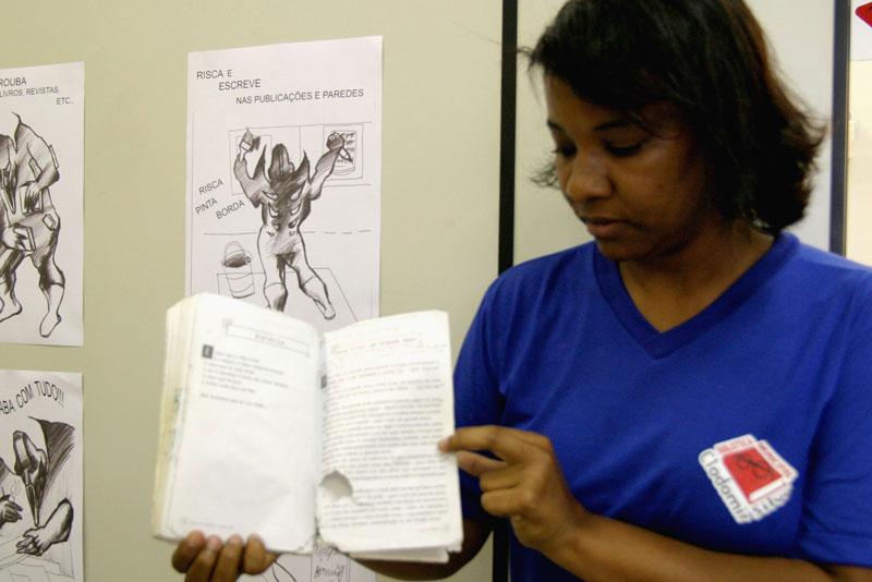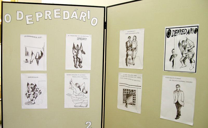 Depredação é o tema de uma exposição que está sendo realizada na Biblioteca Municipal Clodomir Silva. O objetivo é conscientizar os usuários sobre a importância de preservação e conservação da biblioteca, que é um patrimônio de toda a comunidade. A exposição intitulada O depredário é composta de uma seqüência de desenhos do artista plástico Elias Santos. Ele conta a estória de Vitorino, personagem criado para representar os depredários que utilizam a biblioteca. Vitorino é uma pessoa comum no seu dia-a-dia, mas quando entra na biblioteca se transforma num monstro, depredando-a: quebra mesas e cadeiras, risca e suja as portas e paredes, risca, corta e arranca as páginas dos livros, jornais e revistas. O resultado da ação dos depredários da vida real não é só o prejuízo financeiro, mas principalmente o prejuízo cultural. O principal dano é a inutilização do acervo, já que não podemos disponibilizar um material faltando informação. Alguns são repostos, mas outros, mais antigos, por exemplo, não temos como disponibilizar novamente, afirma a chefe da seção de extensão e ação cultural, Carmem Lúcia Pereira. Segundo ela, diariamente são inutilizados jornais e revistas. Os livros não temos dados, porque depende da identificação dos que são danificados e como a rotatividade é grande, normalmente identificamos quando outro usuário nos informa, explica Carmem. Alguns livros são ainda roubados da Biblioteca. Livros pequenos nós perdemos cerca de dois a três por mês, já que são mais fáceis de serem levados dentro de uma bolsa, por exemplo. Já os maiores, o que acontece mais é o usuário perder ou não devolver em caso de empréstimo. Como temos o cadastro, o usuário paga um outro livro e até lá não pode fazer nenhum empréstimo, diz. Ações como a presença de funcionários em todos os locais da biblioteca não são suficientes para coibir a ação desses depredários. É uma questão de educação. Essas pessoas não têm consciência de que o que é público é de todos. Por isso realizamos um trabalho diário de conscientização e estamos fazendo essa exposição inclusive com visitas orientadas, avalia Carmem. As visitas orientadas à biblioteca podem ser agendadas pelos telefones 3179-3742 e 3179-1380. A biblioteca funciona de segunda a sexta, das 8h às 22h, e aos sábados, domingos e feriados, das 9h às 13h.