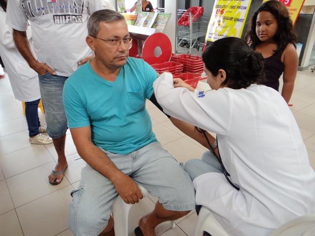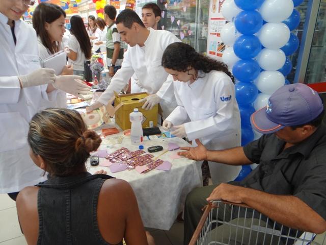 Moradoras do conjunto Augusto Franco que faziam compras em um dos super mercados do bairro Farolândia foram surpreendidas na sexta-feira, 6, com ações promovidas pela Saúde de Aracaju. Em estandes montados foram ofertadas vacinas contra hepatites e tétano, aferições de pressão e testes de glicemia usados para busca de diabetes. As atividades em comemoração ao Dia da Mulher foram planejadas por equipes da Unidade de Saúde da Família (USF) Augusto Franco e contou com a colaboração de estudantes dos cursos de farmácia e medicina da UFS e Unit.