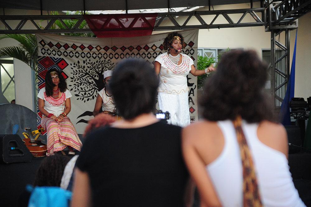 Foram apresentados três contos, ilustrados com canções de Iorubá, interpretadas e tocadas pelos próprios atores durante a apresentação. "Usamos o teatro para contar uma história. Cada ator vai se transformando em vários personagens para dentro de casa história, o que acaba sendo um trabalho bastante minucioso", explica a diretora.