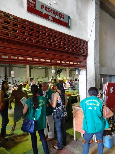 Equipes da Vigilância Sanitária de Aracaju estiveram no setor de pescados do Mercado Municipal Albano Franco, no Centro da capital sergipana, e no cais de desembarque de peixes na manhã da segunda-feira, 30. A ação visou observar in loco a qualidade dos serviços prestados e repassar aos consumidores orientações necessárias para o reconhecimento de peixes e frutos do mar aptos para o consumo. Os fiscais abordaram os vendedores e também entregaram para turistas, consumidores e pessoas que transitavam pelo mercado panfletos com os principais cuidados preventivos.