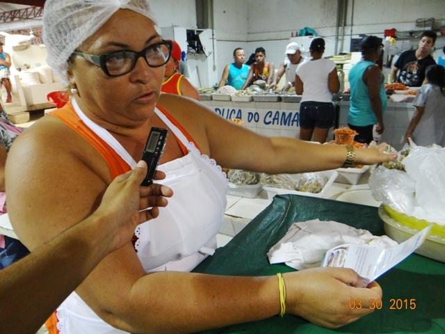 Durante as inspeções muitos vendedores colaboraram abrindo as bancas e refrigeradores onde estavam acondicionados os peixes e camarões. Esse é o caso de Josiene Maria dos Santos há 30 anos trabalha com venda de pescados. “As inspeções são importantes. Na minha barraca a gente trabalha de forma cuidadosa. Usamos toucas, congelamos os peixes, lavamos a banca e as facas. Sabemos que é preciso também cobrir e proteger alguns produtos para não expor a moscas ou qualquer tipo de contaminação”, disse.