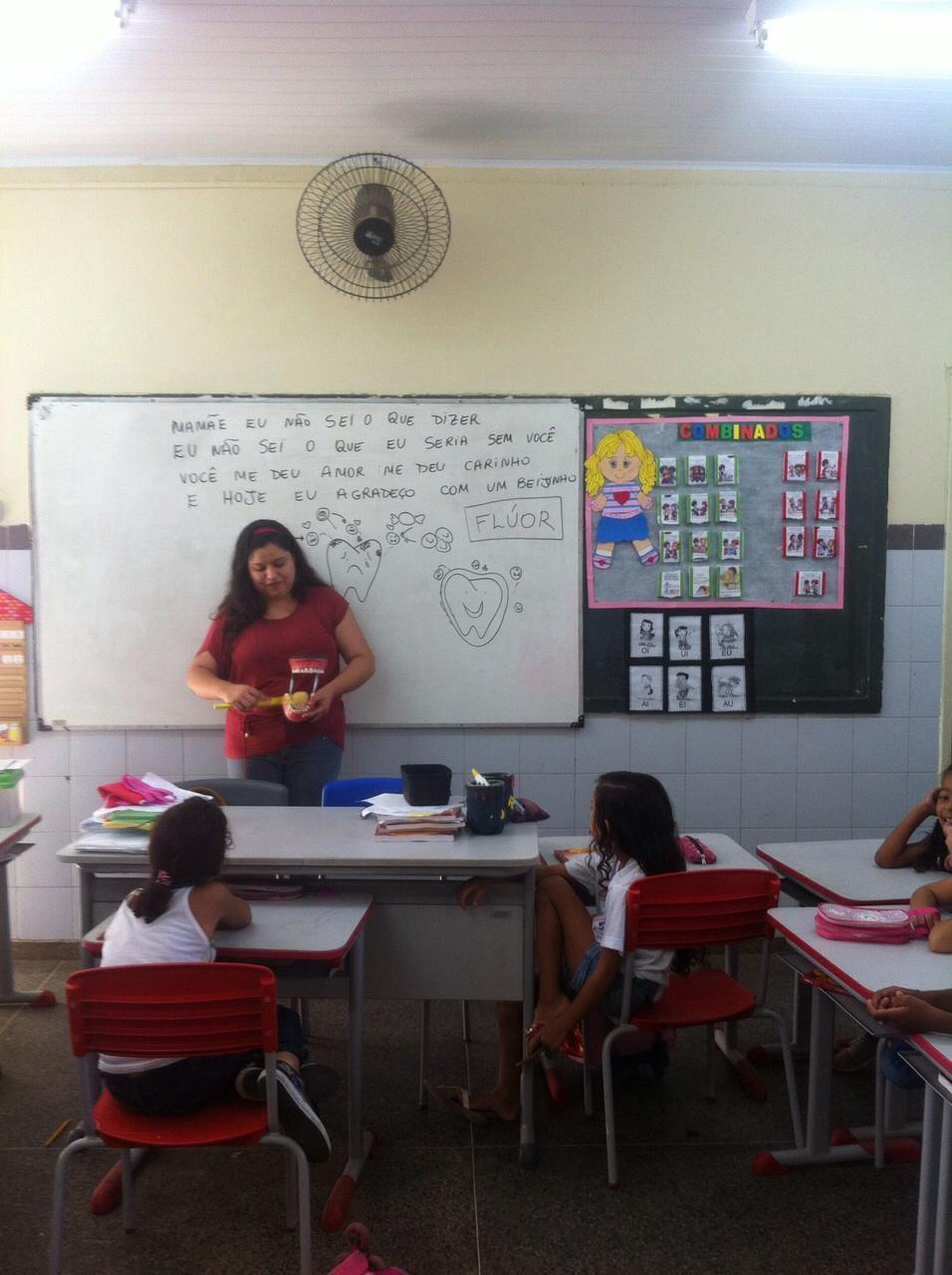 Modo correto de escovação e ação do flúor na proteção contra a cárie foram os temas abordados nesta terça-feira, 5, para os alunos da Escola Estadual Poeta Garcia Rosa, localizada no bairro Luzia. A ação, que também faz parte do Programa Saúde na Escola (PSE), envolveu os profissionais da Unidade de Saúde da Família (USF) Ávila Nabuco, que orientaram os alunos entre 7 e 10 anos de idade.