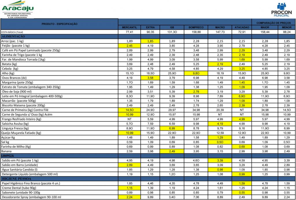 Um novo serviço a favor dos aracajuanos passa a ser realizado pelo Procon Municipal visando munir o cidadão de informação que possibilite a tão desejada economia doméstica. A partir deste mês, o órgão, por meio de sua Coordenação de Educação e Pesquisa, divulgará levantamento de preços de produtos da cesta básica em estabelecimentos comerciais da capital, através de visitas empreendidas em diversos supermercados de Aracaju.