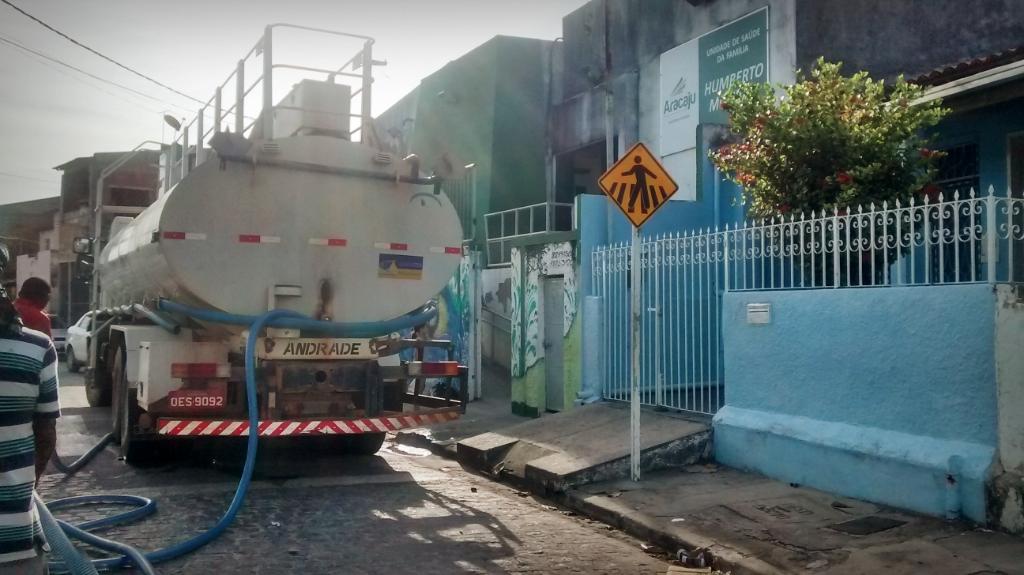 Por conta da falta de água na capital provocada pelo rompimento da adutora responsável por 70% do abastecimento da região metropolitana de Aracaju, algumas Unidades de Saúde da Família (USF) ficaram sem água e tiveram alguns procedimentos suspensos na tarde de ontem, 11, a exemplo dos serviços odontológicos e exames de lâmina. Na manhã de hoje, 12, dois caminhões-pipa foram contratados pela Secretaria Municipal de Saúde (SMS), para que possam encher os reservatórios das unidades e o seu funcionamento possa voltar ao normal.