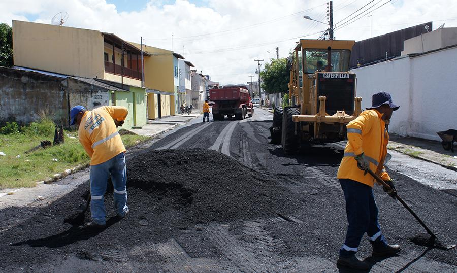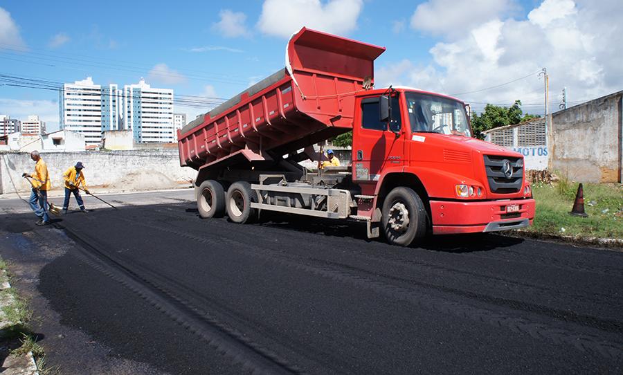 Outra equipe da Emurb atua na rua Aquidabã, no Suissa, onde foram aplicadas mais de 200 toneladas de Concreto Betuminoso Usinado a Quente (CBUQ), apenas nos primeiros trechos recapeados.