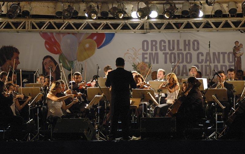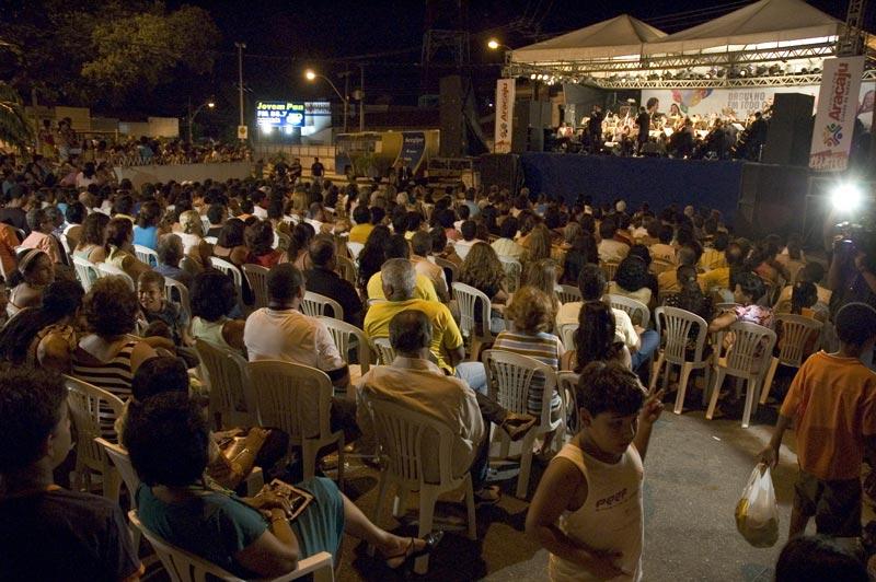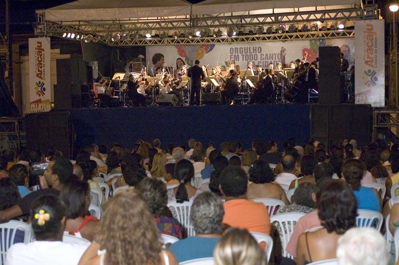 Na noite de ontem, sexta-feira, a Prefeitura de Aracaju levou para Colina do Santo Antônio o projeto Canta Colina, integrando a programação de Aniversário dos 152 anos de Aracaju. O cidadão aracajuano pode acompanhar o melhor da música erudita em uma noite sublime, promovida por meio da Fundação Municipal de Cultura, Turismo e Esporte (Funcaju), em um lugar chave para o desenrolar da história e o desenvolvimento da capital. De acordo com Edvaldo Nogueira, este é um momento ímpar para ele como administrador municipal, promovendo uma programação festiva para o aniversário de 152 anos de Aracaju em seu primeiro ano como prefeito de Aracaju. É uma alegria, orgulho e um prazer muito grande ser prefeito de Aracaju. Cidade que completa 152 anos, ocupando o status de capital nordestina de melhor qualidade de vida. Uma cidade organizada, bonita e agradável, comenta Edvaldo A Orquestra Sinfônica de Sergipe foi a primeira a se apresentar, por volta das 20 horas, com um concerto comemorativo, regido pelo maestro Guilherme Mannis. A orquestra levou uma mistura do clássico com o popular. Foram executadas peças das mais tradicionais da música clássica de autoria de Ludwig Van Beethoven, e peças regionais, como a rapsódia Meu Papagaio, do pianista e regente sergipano Daniel Freire. Para o maestro da Orquestra Sinfônica de Sergipe é muito gratificante e prazeroso participar do Canta Colina. É um evento importante primeiramente por você ter esse contato próximo ao público. Há, às vezes, um medo da população na hora de ir ao teatro, mesmo os ingressos sendo baratos. Agora, com uma iniciativa dessa, atingimos o coração de várias pessoas através da música, ressalta Guilherme Mannis. Dando continuidade ao Canta Colina, a Camerata Heitor Villa-Lobos apresentou algo inédito na capital. A Camerata é o único conjunto oficial de violões que se tem notícia no mundo. Regida pelo Maestro Antônio Mazione, a camerata encantou e abrandou os corações da platéia ao luar na colina. A proposta da camerata é ser um conjunto eclético, passando do barroco ao moderno, do popular ao folclórico. Nosso repertório varia de Bah a Pixinguinha, Mozart à Tom Jobim. A gente atravessa todas as vertentes: música sertaneja, tango, erudita... Enfim, a gente procura ir de encontro ao público, porque o violão ainda tem essa dificuldade de apresentação. O nosso grupo é acústico, afirma o maestro Antônio Mazione. É a primeira vez que Antônio Mazione vem ao Nordeste. É uma vergonha, aos 72 anos, já deveria ter vindo muito mais a essa região. E estou encantado com essa cidade. É uma delícia ficar aqui, fui sumamente bem recebido. Por fim, quero agradecer o carinho de vocês de Aracaju, declara Mazione. Também se apresentaram alguns corais, entre eles o Coral Canarinhos de Aracaju, formado por crianças e adolescentes com idade entre 11 a 17 anos. Os garotos cantam, tocam os instrumentos, além da dança folclórica. O Coral foi fundado em outubro de 1999 pelo professor Carlos Magno, que até hoje regente Os Canarinhos. Segundo a presidente da Funcaju, Lucimara Passos, o projeto Canta Colina abre a programação cultural do aniversário da cidade, trazendo a música clássica para perto da comunidade. Nós buscamos atrair o público para ter acesso a uma programação diferenciada e a gente conseguiu isso. É muito proveitoso desenvolver essas ações. Levar música de qualidade é um compromisso da Prefeitura de Aracaju para com o cidadão, explica Lucimara Passos. O prefeito Edvaldo Nogueira falou da importância que é incentivar o jovem a conhecer a boa música. Ele comentou ainda que a população gosta do que é bom e o que falta é oportunidade. A gente percebe os rostos emocionados das pessoas quando escutam a música clássica. Toca no sentimento do ser humano. Por isso, nós só venceremos as barreiras culturais que são impostas pela sociedade levando informação e cultura. Independente de cor, sexo, raça, enfim, qualquer cidadão merece esse encontro com o belo. A linguagem da música é universal. Ela toca os corações e as mentes de todos, analisa Edvaldo Nogueira. Veja mais... Boa música encanta aracajuanos no Canta Colina