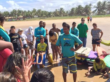 A cadeira anfíbia possui rodas maiores e mais largas que possibilitam a locomoção de pessoas com deficiência motora com facilidade pela areia até chegar à água. O projeto Estrelas do Mar visa ensinar a prática do bodyboarding para crianças e adolescentes com as mais variadas deficiências. O vereador Lucas Aribé também participou da cerimônia de entrega, que ainda contou com música ao vivo.