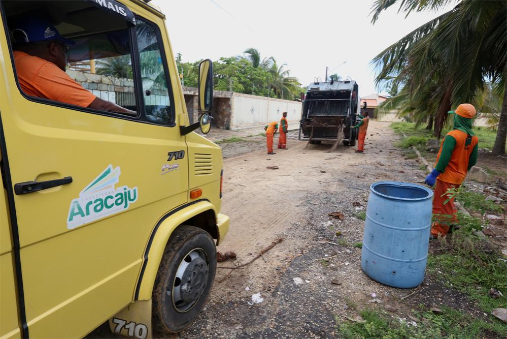 "Tem pouco material hoje. Esta localidade tem muitos condomínios e não costumam colocar o lixo na porta como quem mora em casa. Mesmo assim, passamos por todos os bairros e fazemos o descarte ideal desse material com a reciclagem", relata Reinaldo Souza, gerente de resíduos sólidos da Emsurb.