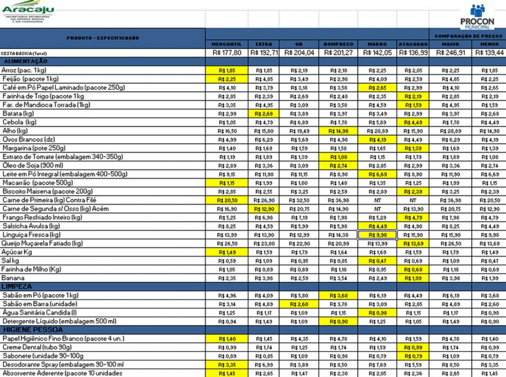 A fim de munir o consumidor de informações que propiciem economia no orçamento doméstico dos aracajuanos, o Procon Municipal de Aracaju realizou nos dias 26 e 27 de maio, uma nova Coleta Comparativa de Preços de Produtos da Cesta Básica visando, por meio da informação, ofertar um serviço cidadão aos aracajuanos.