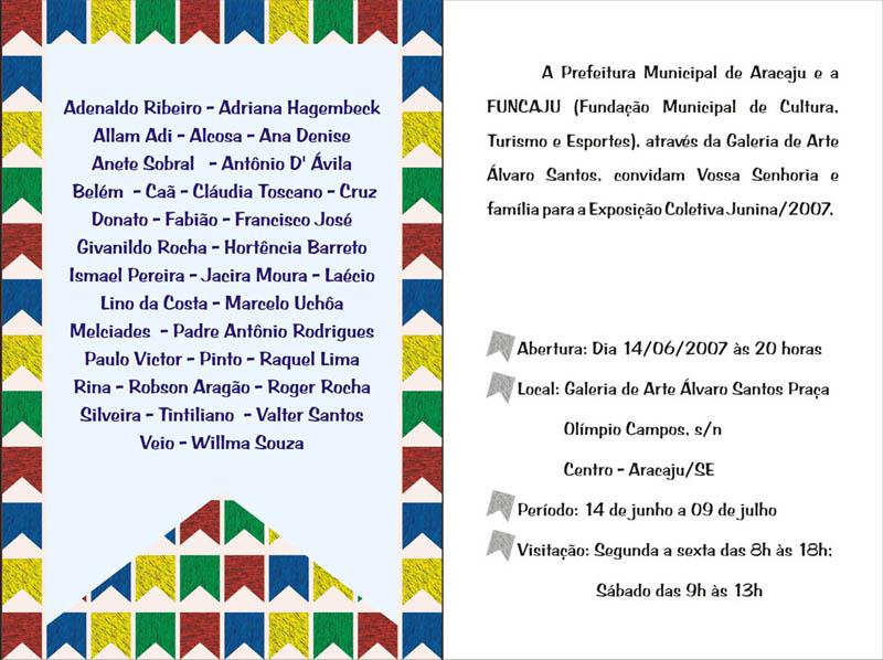 As tradições e comemorações em homenagem aos santos do período junino, Santo Antônio, São João e São Pedro, são alguns dos temas da Exposição ´Coletiva Junina´, que será lançada hoje, quinta-feira, na Galeria de Artes Álvaro Santos. O lançamento acontece a partir das 20 horas, com direito a coquetel temático com comidas típicas e show com trio pé-de-serra. Ao todo, estão sendo apresentadas 35 peças entre telas em acrílico, óleo ou mista, além de esculturas em madeira e material reciclado. A exposição apresenta vários nomes da arte sergipana. Todos artistas visuais, empenhados em dar visibilidade ao espírito festivo e à fé que caracterizam a cultura nordestina, vivenciada de forma especial durante o mês de junho. A exposição fica em cartaz até o dia 9 de julho. A Galeria de Artes Álvaro Santos fica aberta à visitação de segunda à sexta, das 8 às 18 horas, e aos sábados, das 9 às 13 horas. O endereço é Praça Olímpio Campos, Centro.
