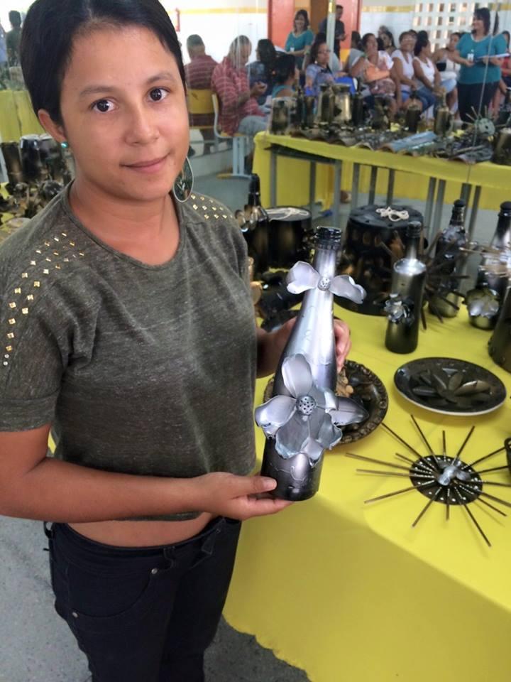 Leidiane, moradora do bairro Mosqueiro e aluna concludente, fala com entusiasmo do curso que concluiu. "Através do curso de reciclagem eu aprendi a confeccionar artigos com CD, telhas, garrafas e pratos enfeitados. Eu sempre trabalhei de garçonete, nunca tive experiência com reciclagem e logo que aprendi aqui no curso eu já comercializei minhas peças e estou entusiasmada com a possibilidade de trabalhar ganhando meu dinheiro próprio, deixando de trabalhar para os outros. Vou começar aos poucos e tenho perspectiva de me tornar uma empreendedora", ressaltou Leidiane.