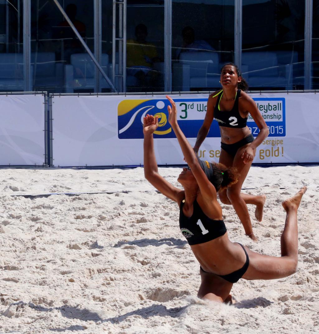 A dupla feminina na categoria 15-16 anos do Mundial Escolar de Vôlei de Praia Carol Almeida e Francy Lima venceu na manhã de hoje, 16, a dupla de Israel por 2 sets a 0. Com bastante entusiasmo e conseguindo uma classificação satisfatória, hoje à noite haverá um jogo entre Brasil x República Dominicana, para ver quem chega à semifinal.