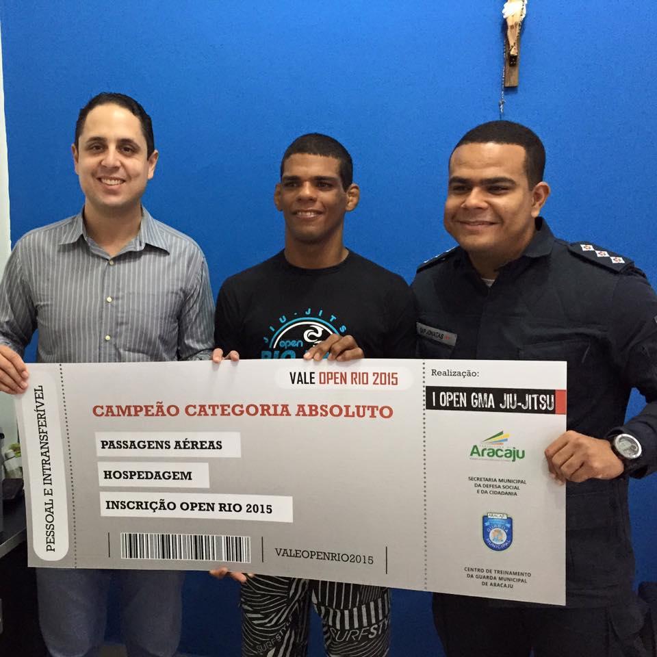 Esse é o caso do atleta Alisson Nunes dos Santos, vencedor em sua categoria no Open GMA de Jiu-Jitsu. O lutador recebeu das mãos do secretário Carlos Eloy Filho a passagem aérea para competir no Rio Open de Jiu-Jítsu 2015, no Rio de Janeiro, considerado o maior evento da modalidade no Brasil. A entrega aconteceu no gabinete do diretor adjunto da Guarda Municipal, Capitão Jonatas Souza, que aproveitou para agradecer o apoio da Sejesp ao evento.