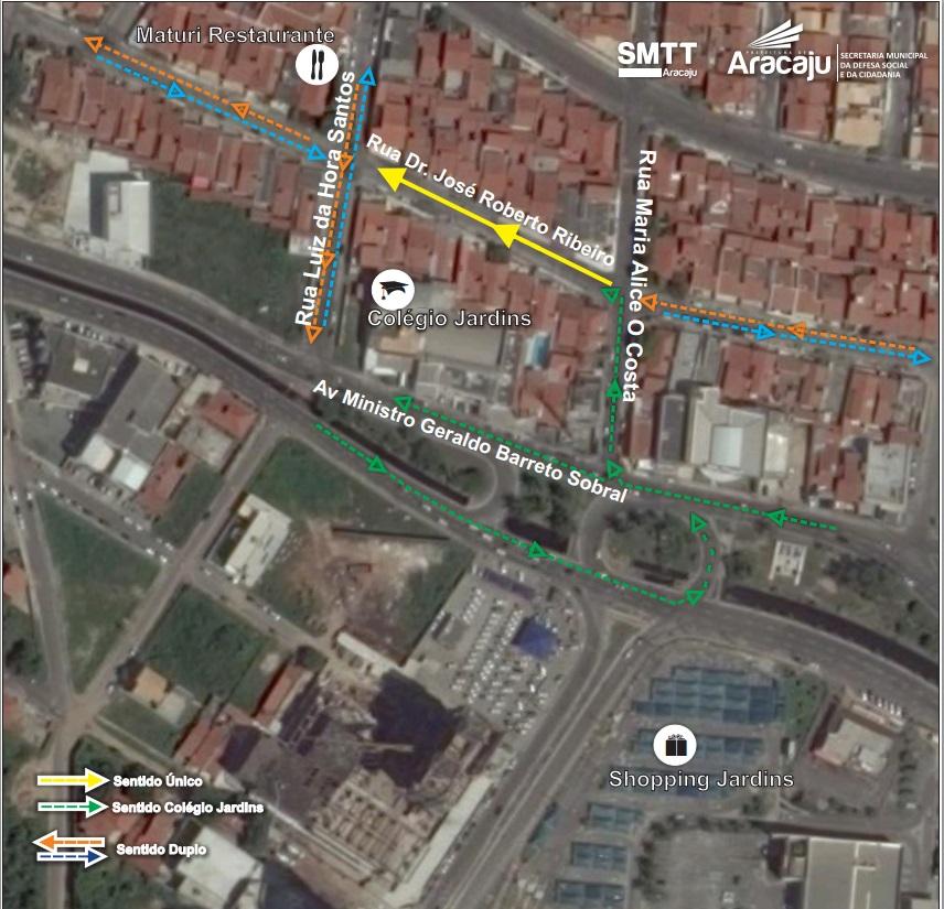 A Superintendência Municipal de Transportes e Trânsito (SMTT), órgão vinculado à Secretaria Municipal da Defesa Social e da Cidadania, informa mudança de circulação nos bairros Jardins e Grageru, a partir desta segunda-feira, 27. As alterações visam ordenar o fluxo nas proximidades dos colégios Jardins e Coesi, ajudando na melhoria da Mobilidade Urbana e segurança dos que transitam nas regiões.