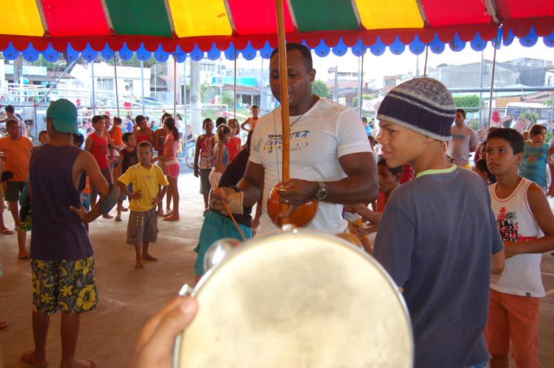 O último sábado, dia 19, amanheceu com um colorido diferente no bairro América. A praça Franklin Roosevelt foi cenário da quarta edição do circuito ´Arte em Toda Parte’. Com a realização do projeto no local, a Prefeitura de Aracaju, por intermédio da Fundação Municipal de Cultura, Turismo e Esportes (Funcaju), possibilitou aos moradores do lugar e também de comunidades vizinhas o acesso ao teatro, música, dança e atividades esportivas, recreativas e de lazer. Cheyla Menezes, moradora do bairro que acompanhou sua filha, não escondeu o contentamento com as diversas atividades realizadas na praça. “Nossa comunidade não tem acesso a essas atividades esportivas e culturais com freqüência. As crianças aqui são carentes de lazer”, disse a moradora, ressaltando a importância de projetos como esse. A presidente da Funcaju, Lucimara Passos, que participou do evento junto ao prefeito Edvaldo Nogueira, disse que se sente gratificada em chegar ao bairro e ver a adesão de tantas pessoas ao projeto. “É ótimo ver essa movimentação toda na praça, as pessoas participando ativamente, se divertindo e aproveitando tudo o que o ‘Arte em Toda Parte’ oferece”, comentou Lucimara. Durante todo o dia, cada ponto da praça oferecia um tipo de atividade. Por todos os lados se via crianças brincando com bambolês e patinetes, pulando corda, jogando bola, pulando no ‘jump’, vôlei ou fazendo bolinhas de sabão. Ao mesmo tempo, aconteciam diversas oficinas que contaram com uma grande participação de pessoas. Oficinas Dentre as oficinas mais concorridas, estava a de capoeira. O grupo Capoeira Brasil colocou as crianças na roda e realizou brincadeiras didáticas. De acordo com os integrantes do grupo, a capoeira precisa ser vista como esporte. “É importante que a população saiba que ela foi a única luta criada e desenvolvida no Brasil, e esse espaço no ‘Arte em Toda Parte’ serve de pontapé inicial”, afirma o mestre Genivaldo Santana, mais conhecido como Baiano. Esportes menos comuns também agitaram o espaço, como é o caso do xadrez e da dama. A oficina teve o intuito de democratizar esses esportes e, através deles, produzir na comunidade a necessidade e a importância da reflexão, além de gerar integração entre os pais e filhos que participavam da oficina. “Como o xadrez ainda é visto como um esporte elitizado, torna-se importante inserir essa oficina nas comunidades. Dessa forma, podemos democratizá-lo, e se houver uma continuação na prática dele podemos formar atletas competentes”, diz o Lúcio Alberto, professor da oficina. A Associação Circulante de Artes Cênicas, que fomenta a arte circense em Sergipe por meio de oficinas de cunho pedagógico, participou do evento reunindo cerca de 30 participantes de variadas faixas etárias. O palhaço e malabarista Fredy Matos, comentou sobre a inserção do circo como agente transformador. “Iniciativas como essas são importantes, pois despertam a comunidade para a arte circense e valorizam o indivíduo enquanto membro de um determinado grupo social. A lona é mágica. Ela é capaz de unir os indivíduos sem distinção de cor, raça ou credo”, acrescentou feliz com a receptividade do público. As crianças concorriam ainda por uma vaga na Oficina de Desenhos, que acontecia em meio a tintas e muitos lápis de cor. A atividade teve a intenção de estimular a criatividade e a forma de expressar a visão dos participantes através dos desenhos produzidos. “Com essa atividade as crianças tiveram a oportunidade de aprender a manusear as tintas, de aprender como misturar as cores e a cada desenho é perceptível a evolução nos detalhes”, disse a professora Deisiane Prado. Com a mesma idéia de estimular a criatividade, a oficina de confecção de pipas fez os participantes darem asas à imaginação. José Evanilson, 13 anos, que confeccionou sua própria pipa na oficina, estampava no rosto um sorriso de satisfação enquanto empinava no ar sua criação. “Não pensei que fosse tão fácil fazer uma pipa. Agora já posso fazer a minha em casa. O sábado está bem diferente e animado pois quase não temos diversão no bairro”, comentou Evanilson enquanto brincava no anfiteatro da praça que tinha no alambrado da quadra um cartaz sobre a conscientização da brincadeira com pipas que trazia a frase: “Eu solto pipa com segurança. Pipa é Cultura”. Biblioteca Móvel e Semana da Luta Antimanicomial Uma novidade do Circuito ´Arte em Toda Parte´ foi a visita da Biblioteca Móvel Itapemirim. O ônibus que carrega o seu acervo ficou no local e esteve aberto ao público das 10 às 12 horas e das 13 às 17 horas. Monitores que ficaram orientando todos os que visitavam a biblioteca foram cedidos pelas bibliotecas Clodomir Silva e Maria Ivone de Menezes. A biblioteca permaneceu no bairro América até ontem, domingo. Além disso, já que a semana foi de eventos comemorativos à Luta Antimanicomial, aconteceu uma roda de discussão sobre temas que relacionavam loucura e sociedade. De acordo com Camille Arruda, coordenadora da Rede de Atenção Psicossocial do município de Aracaju, aproximar ao máximo esse debate da sociedade é de grande importância social e de rompimento do preconceito. Arte visual, cinema e teatro O grafiteiro André Chagas e uma turma de colegas tornaram a praça mais bonita com sua arte. Eles deixaram todo o anfiteatro da praça repleto de desenhos alegres e coloridos. André, que trabalha com grafite há seis anos, acredita ter passado um recado importante para a comunidade. “É bom que as pessoas saibam a diferença entre a grafitagem, que é uma forma de arte, e a pichação. A pichação é ilegal, arriscada e só traz poluição visual. A grafitagem é o oposto, deixa tudo mais bonito. É o que fizemos aqui nessa praça hoje”, destacou. Já era noite quando foi iniciada a exibição do desenho animado ‘Procurando Nemo’. Jorge Paulo Paiva, morador de um ba