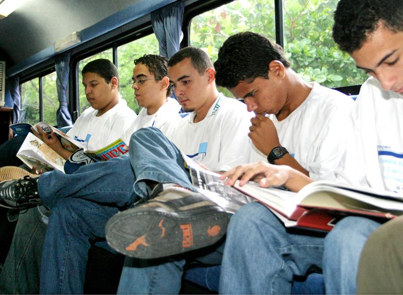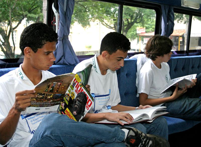 A Biblioteca Móvel Itapemirim está em Aracaju desde a última sexta-feira, dia 19, e fica na cidade até o dia 1º de junho, disseminando informações e incentivando a leitura por onde passa. O projeto atende crianças, jovens e adultos de diferentes localidades. Aquele que chegar à Biblioteca Móvel se surpreenderá com a mais diversa programação, que conta com oficinas lúdicas, teatro de fantoches, contação de histórias, encontro com autores, agendamento de escolas, exposições, palestras, apresentações musicais e apresentações teatrais. Neste período em que o projeto está em Aracaju, o horário de visitação é das 10 às 17 horas. Normalmente o horário reservado para as escolas é das 10h30 às 11 horas e das 13h30 às 14 horas. De acordo com a diretora da Biblioteca Municipal Clodomir Silva, Zélia Trindade, a escola que tiver interesse em levar seus alunos para conhecer a Biblioteca Móvel Itapemirim deve fazer o agendamento escolar pelo telefone (79) 3179-3742. Este projeto, por ser diferente, acaba despertando a vontade das pessoas em procurarem as bibliotecas. O acervo que está disponível no ônibus também pode ser encontrado nas bibliotecas municipais e em um volume maior, comenta Zélia. Para o monitor da Biblioteca Móvel, Roverson Rodrigues, trabalhar num projeto como esse é muito importante, já que promove a leitura, que é à base da educação. Em linhas gerais posso dizer que é gratificante fazer parte deste projeto, por levarmos cultura para diferentes pontos do país, além do retorno que sentimos das pessoas por estarem conhecendo algo novo (Biblioteca instalada em um ônibus). É visível em algumas situações vermos o brilho nossos olhos das crianças, fala Roverson. Segundo Nanci Fabiana, professora do Jardim de Infância Augusto Maynard, levar as crianças para conhecer esse projeto é muito interessante por fazer um resgate da literatura e do imaginário. Eu aprendi a ler antes de ir para a escola, através dos gibis. Possibilitar as crianças o encontro com a leitura, sendo ela por meio dos livros ou gibis, faz com que as crianças viagem através da escrita, e desperte o imaginário. Portanto, este projeto está de parabéns, destaca Nanci. O estudante Diogo Magalhães, 9, esteve na Biblioteca Móvel e disse que adora ler. Desde cedo meus pais me incentivam a ler. Gostei muito desta biblioteca; o livro 111 poemas é muito engraçado, diz Diogo. Nos dias 19 e 20 deste mês a Biblioteca Móvel esteve presente no Circuito ´Arte em Toda Parte´, promovido pela Fundação Municipal de Cultura, Turismo e Esportes (Funcaju) na Praça Franklin Roosevelt, no bairro América. Entre os dias 21 e 26, quem passar na Praça Camerindo, localizada na avenida Barão do Maruim, poderá conhecer a Biblioteca Móvel. Já nos dias 27 e 28, ela estará no bairro Santa Maria, dentro da programação do ´Grito da Periferia´; e de 29 de maio a 1º junho retorna à Praça Camerindo, encerrando assim as atividades na capital sergipana. Biblioteca Móvel O projeto pedagógico foi desenvolvido pela professora Walda Antunes, doutora em Educação e mestre em Planejamento Bibliotecário. O projeto Biblioteca Móvel Itapemirim está sendo desenvolvido há dois anos pela Viação Itapemirim, em parceria com as prefeituras municipais. O acervo conta com mais de dois mil títulos de diversas áreas de interesse.