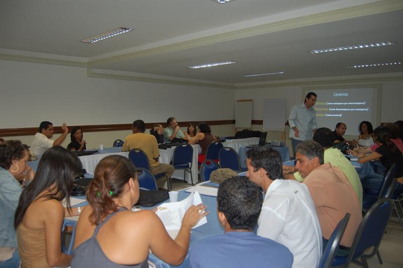 A Fundação Municipal de Cultura Turismo e Esporte (Funcaju) promoveu, neste último fim de semana, um curso de capacitação em Planejamento e Gestão Estratégica voltado para o público interno. O curso, de 14 horas/aula, foi realizado no hotel Aquários e ministrado pelo consultor em Administração, Vinicius Nejaim. De acordo com a presidente da Funcaju, Lucimara Passos, o evento é importante para o planejamento das ações desenvolvidas pela Fundação. Nós estamos entrando numa nova fase de trabalho, com uma proposta que se não for muito bem planejada e se não houver uma ação integrada com todas as unidades tende a não atingir o sucesso que nós esperamos, explica Passos. Por isso nós estamos nos reunimos neste fim de semana para juntos definirmos as metas e os objetivos que a Funcaju pretende alcançar, para traçar as propostas de políticas a serem desenvolvidas daqui para frente. Esperamos que dentro de uma sistemática científica, com a ajuda de profissionais, possamos chegar a um consenso e partir para o desenvolvimento de ações de forma coordenada, declara Lucimara. Segundo Dayse Carla Cardoso Dias, da equipe de Esportes da Funcaju, o curso foi de grande importância. A partir de uma ação como essa, nós, como funcionários, conseguimos ter uma nova visão de administração, que faz com que todos pensem e desenvolvam políticas públicas voltadas para a cultura, o turismo e o esporte em Aracaju, comenta. Para a diretora do departamento Administrativo da Fundação, Ortência Maria dos Santos, o curso valoriza e incentiva o profissional, como também torna possível a integração entre os vários departamentos da Funcaju, para que assim todos melhorem sua atuação. A iniciativa de proporcionar um curso como esse é fundamental porque pela primeira vez nós estamos discutindo a questão do planejamento da Funcaju, que é indispensável para alcançarmos os nossos objetivos como Fundação, ressaltou Kátia Perete, diretora administrativa Financeira. Funcionário da casa há 21 anos, Francisco Joaquim dos Santos, chefe do Patrimônio, comenta que nunca tinha participado de um curso de Planejamento Estratégico. Acho que depois desse curso vamos com certeza conseguir desenvolver melhor nossas atividades, o que vai facilitar o nosso trabalho , afirma. O planejamento estratégico oferece ferramentas para que a empresa passe a pensar nela como um todo, e a partir daí possa fazer ações pensadas e planejadas, o que acaba minimizando os custos e otimiza processos e os resultados são positivos, frisa o ministrante do curso, Vinicius Nejaim.