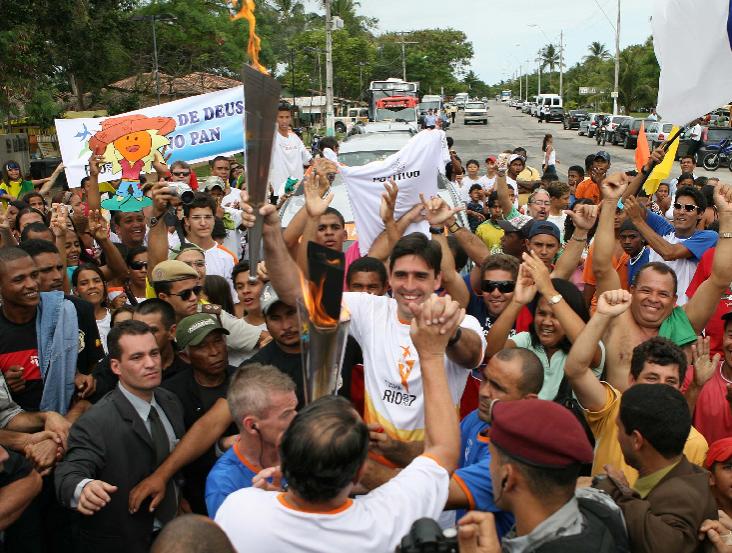 A tocha dos Jogos Pan-Americanos Rio 2007 chegou ontem, terça-feira, ao Brasil, aquecendo os preparativos para a passagem das chamas pelos 42 municípios brasileiros, entre eles Aracaju, onde o fogo simbólico deve desembarcar no início da tarde do próximo domingo, dia 10. Cada localidade representa um dos países que vão participar da competição. Vinda do México, a tocha foi recebida em Porto Seguro, na Bahia, de onde seguiu para Santa Cruz de Cabrália, marco histórico do descobrimento de Brasil, local em que começou oficialmente o revezamento. Além de artistas e autoridades políticas, atletas como Wilson Gomes Carneiro, primeiro medalhista brasileiro em Jogos Pan-americanos e segundo colocado nos 400m com barreiras em Buenos Aires, participaram da solenidade. Hoje as chamas vão passar por Goiânia (GO). Amanhã ela estará em Minas Gerais e depois segue para o Espírito Santo, retornando à Bahia no dia 9. Até o dia 13 de julho, data da cerimônia de abertura dos XV Jogos Pan-Americanos Rio 2007, no Maracanã, a tocha vai percorrer todo o território nacional, levando uma mensagem de paz e confraternização através do esporte. Aracaju O clima já e de ansiedade e muito trabalho entre a comissão da Prefeitura Municipal de Aracaju (PMA), responsável pela organização de todos os eventos ligados à passagem do fogo simbólico pela capital. Diversas secretarias estão envolvidas e, de acordo com a presidente da Fundação Municipal de Cultura, Turismo e Esporte (Funcaju), Lucimara Passos, que coordena as equipes, todos estão envolvidos e empenhados em garantir toda a logística exigida pelo Comitê Olímpico Brasileiro. Segundo o prefeito Edvaldo Nogueira, uma das grandes preocupações da PMA é com a divulgação dos atrativos da capital. Queremos aproveitar a oportunidade para mostrar tudo o que temos de melhor. A intenção é exaltar a prática esportiva, mas também aproveitar o momento em que muitos estarão com as atenções voltadas à Aracaju para trazer turistas para a nossa cidade, destaca. Em Aracaju, a tocha do Pan chega ao aeroporto às 13 horas, de onde vai de helicóptero para a colina do Santo Antônio. Em solo, as chamas serão conduzidas por 60 pessoas, que vão se revezar a cada 400m, em um percurso que totaliza 24 km. Depois de passar pelo Centro, Av. Beira Mar, Parque da Sementeira, Coroa do Meio e Atalaia, onde a programação será encerrada com uma grande festa. Veja mais... Tocha do Pan que chega a Aracaju no dia 10 é acesa no México