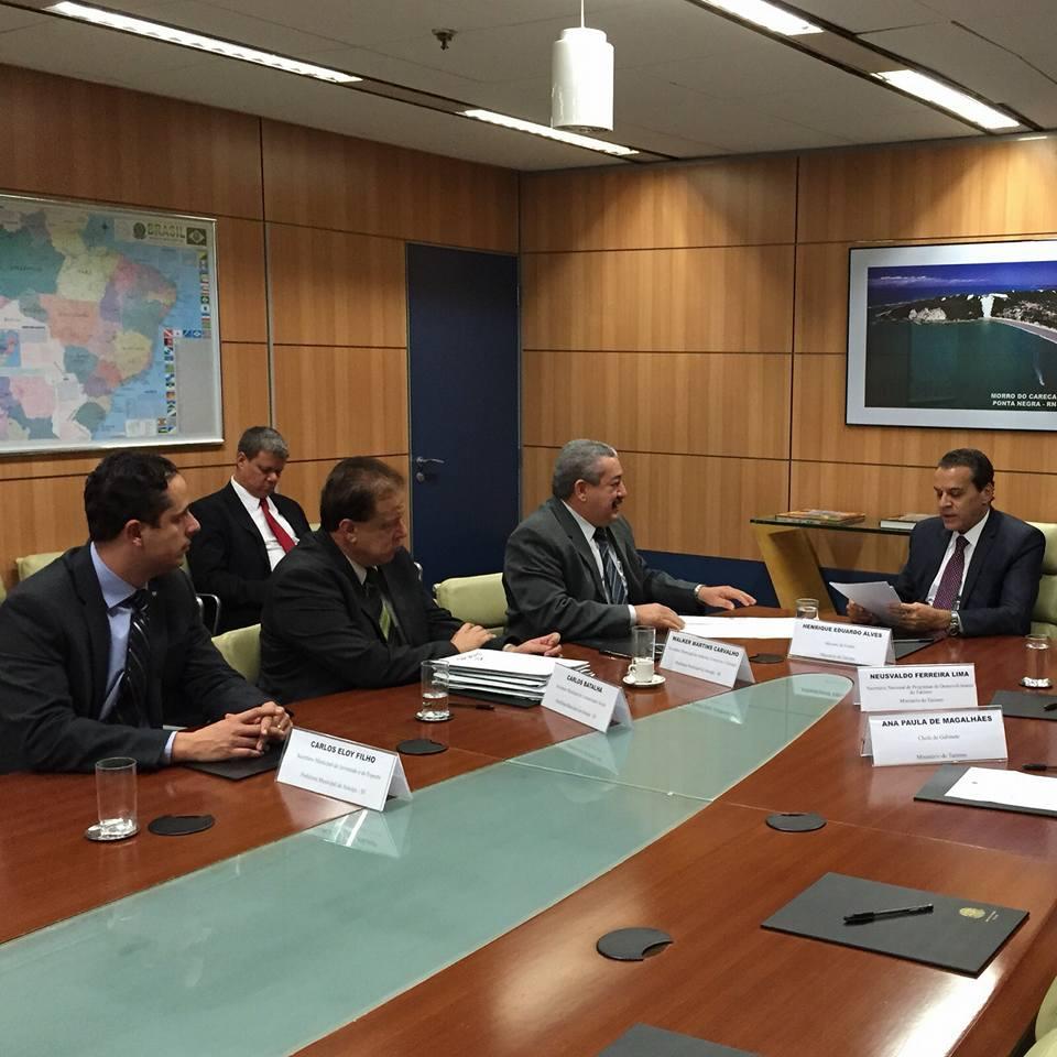 Nesta quarta-feira, 12, os secretários municipais de Comunicação Social, Carlos Batalha, Juventude e Esporte, Carlos Eloy, e Indústria, Comércio e Turismo, Walker Carvalho, estiveram reunidos em Brasília com o ministro do Turismo, Henrique Alves. No encontro, os representantes da administração municipal solicitaram apoio do Ministério do Turismo (MTur) para eventos e obras da Prefeitura de Aracaju que irão impulsionar ainda mais a cultura e o turismo.