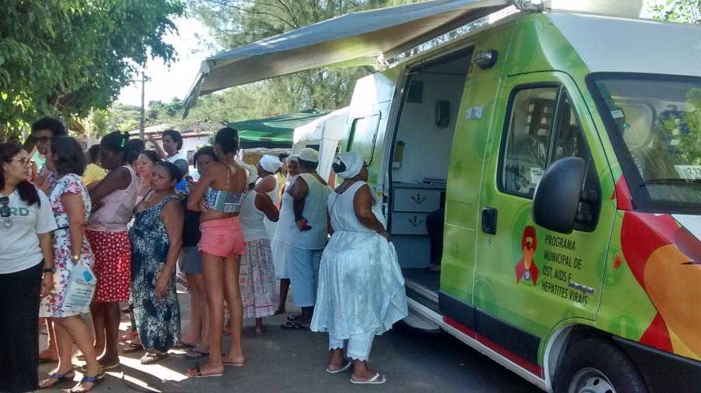 A Prefeitura de Aracaju, através do Programa Municipal de DST/Aids, Programa Municipal de Controle da Hanseníase e do Programa Redução de Danos (PRD), da Secretaria Municipal da Saúde (SMS), esteve realizando uma parceria com a Associação Afro-Cultural Akueran durante a 9ª edição do Projeto Giberú, realizada na tarde desta segunda-feira, 24, no bairro Santa Maria. O objetivo do evento foi aproximar a comunidade religiosa local dos próprios moradores do bairro e trazer ações de promoção à saúde para a população. Durante a ação, foram realizados testes rápidos de HIV e Sífilis, verificação de pressão arterial, testes de glicemia e massoterapia.