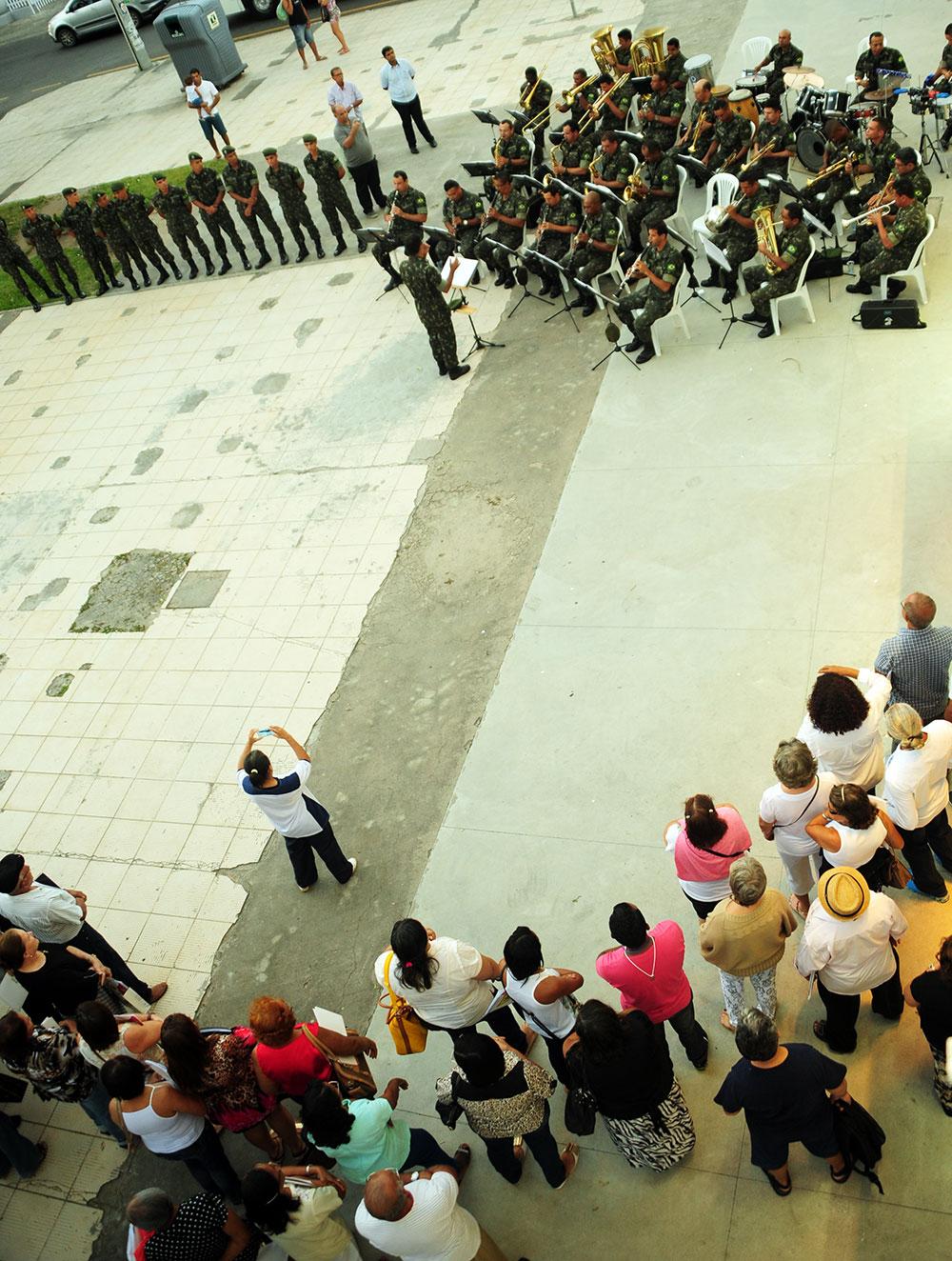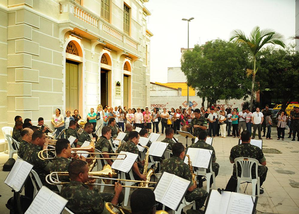 A banda de música do 28º Batalhão de Caçadores se apresentou na tarde de ontem, 27, na Praça General Valadão, em frente ao Centro Cultural de Aracaju, unidade da Fundação Cultural Cidade de Aracaju (Funcaju). O concerto encantou o público com um repertório diversificado, incluindo a música sergipana ‘Cheiro de Terra’ de Chico Queiroga & Antônio Rogério.