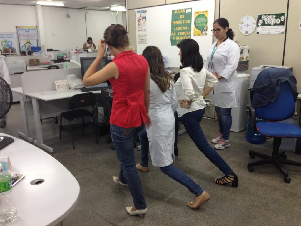 Segundo a professora convidada para ministrar as aulas de Fisioterapia, Heloísa Matos, o foco é sempre promover a interação e acima de tudo o pensar na própria saúde. “Recebemos com muito orgulho o convite dos profissionais da Secretária Municipal de Saúde, representados pela a coordenadora de Promoção à Saúde, Maria Antonia Maia d'Ávila. Nosso trabalho é basicamente fazê-lo entrar em movimento. São exercícios rápidos, pois os participantes estão em horário de trabalho, então pedimos que eles usem roupas confortáveis e saiam da frente do computador para se exercitarem um pouco. Realizamos treino respiratório, de equilíbrio postural, tudo para evitar a mobilidade das articulações do ombro, quadril e joelhos”, explicou.