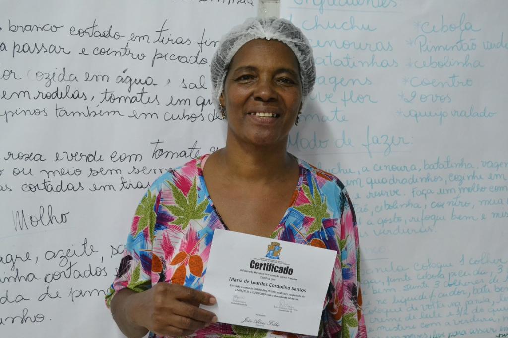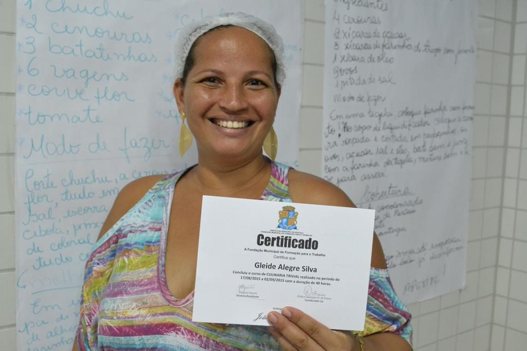 A aluna Gleide Alegre, de 35 anos, trabalha vendendo doces e salgados. Ela decidiu fazer o curso para adquirir novos conhecimentos e, a partir de agora, pretende agregar as receitas que aprendeu às encomendas que produz. "Foi muito bom, aprendi coisas básicas com um toque refinado. Quero me aperfeiçoar mais e colocar em prática tudo que já aprendi", diz Gleide, que, no futuro, deseja abrir o próprio negócio no ramo da culinária.